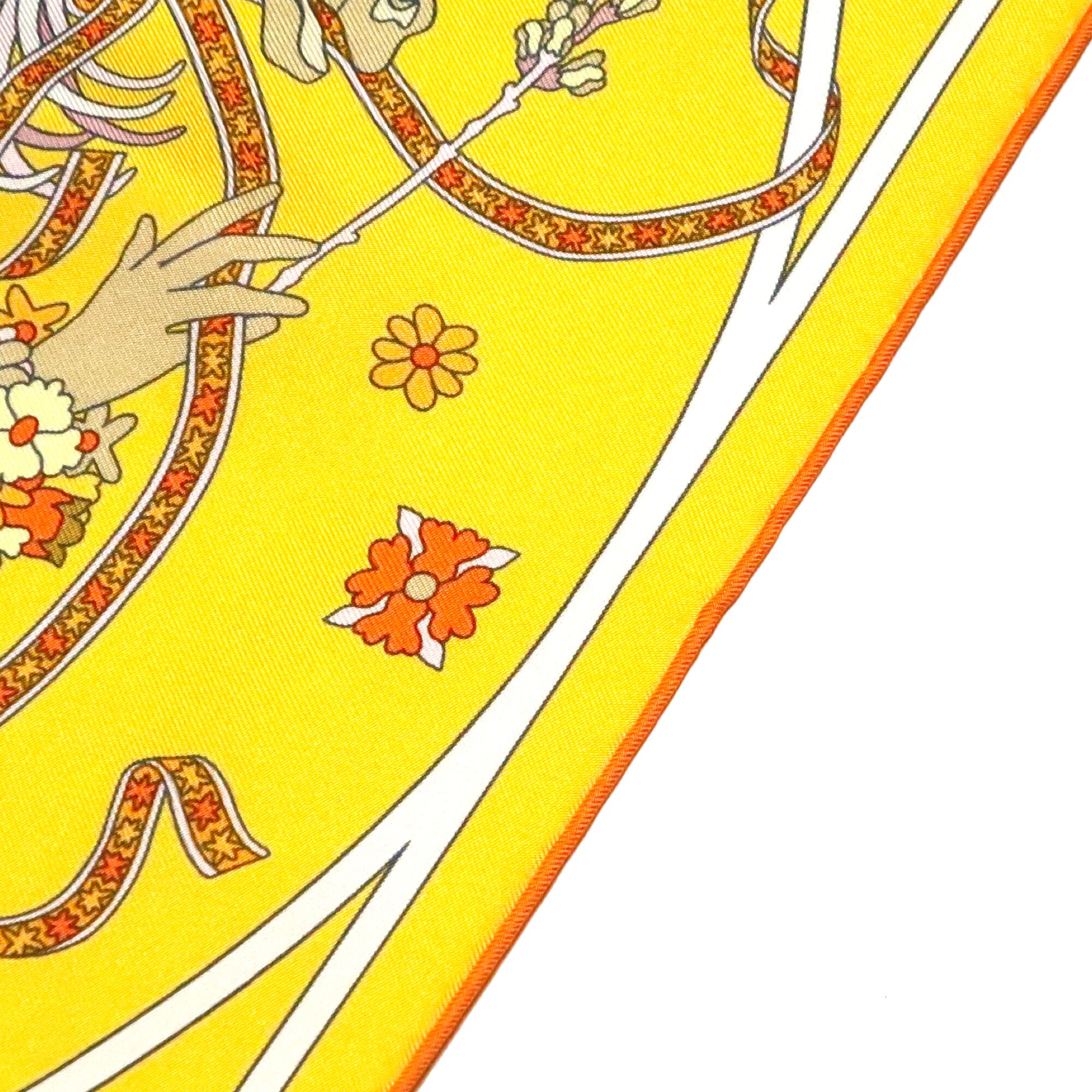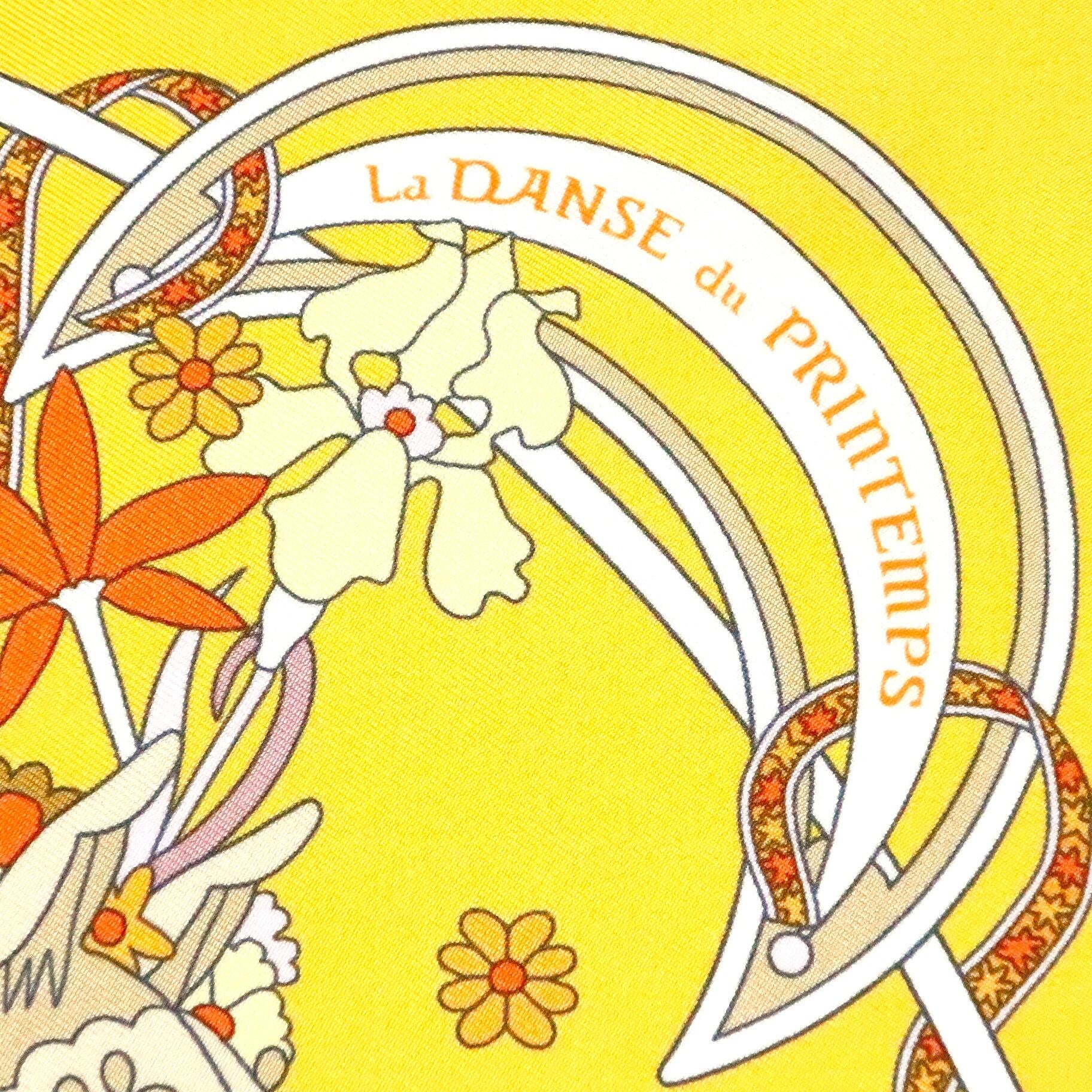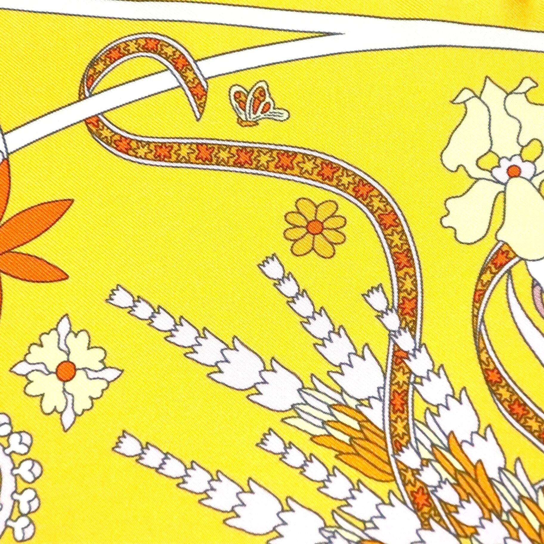 エルメス HERMES/スカーフ ガヴロッシュ 春の舞 La Danse du Printemps 花柄 踊り イエロー ホワイト カラフル リボン シルク プチカレ【中古】【S215】
