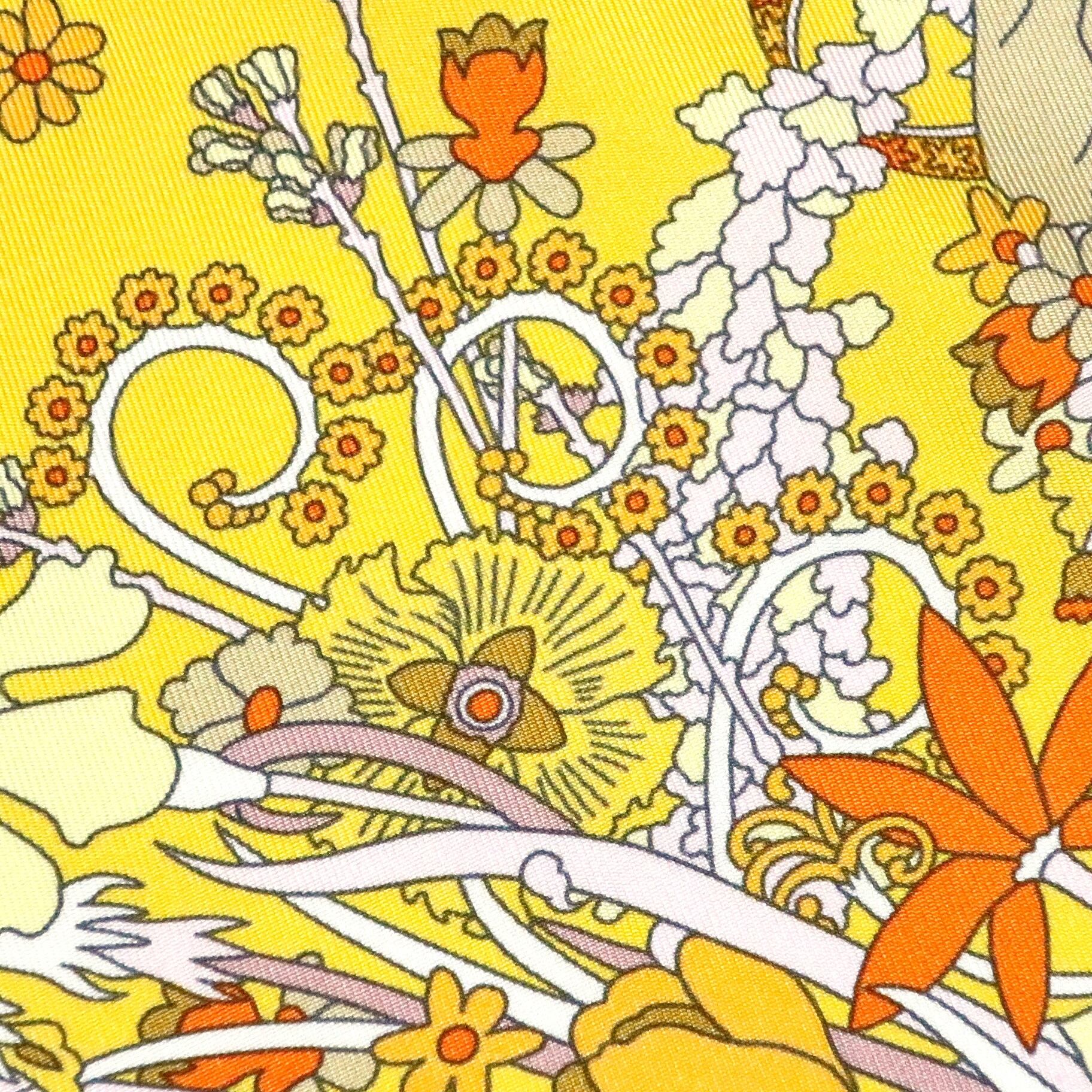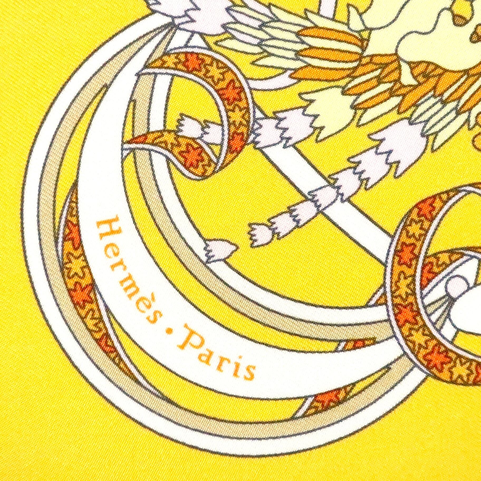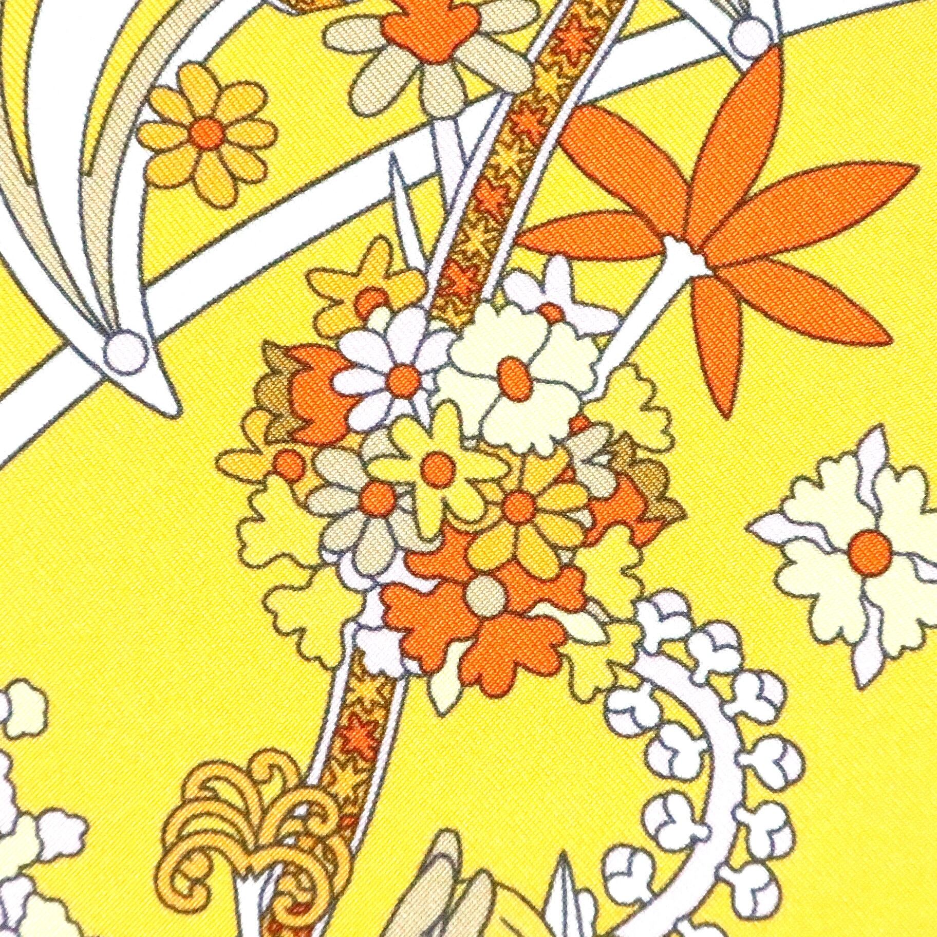 エルメス HERMES/スカーフ ガヴロッシュ 春の舞 La Danse du Printemps 花柄 踊り イエロー ホワイト カラフル リボン シルク プチカレ【中古】【S215】