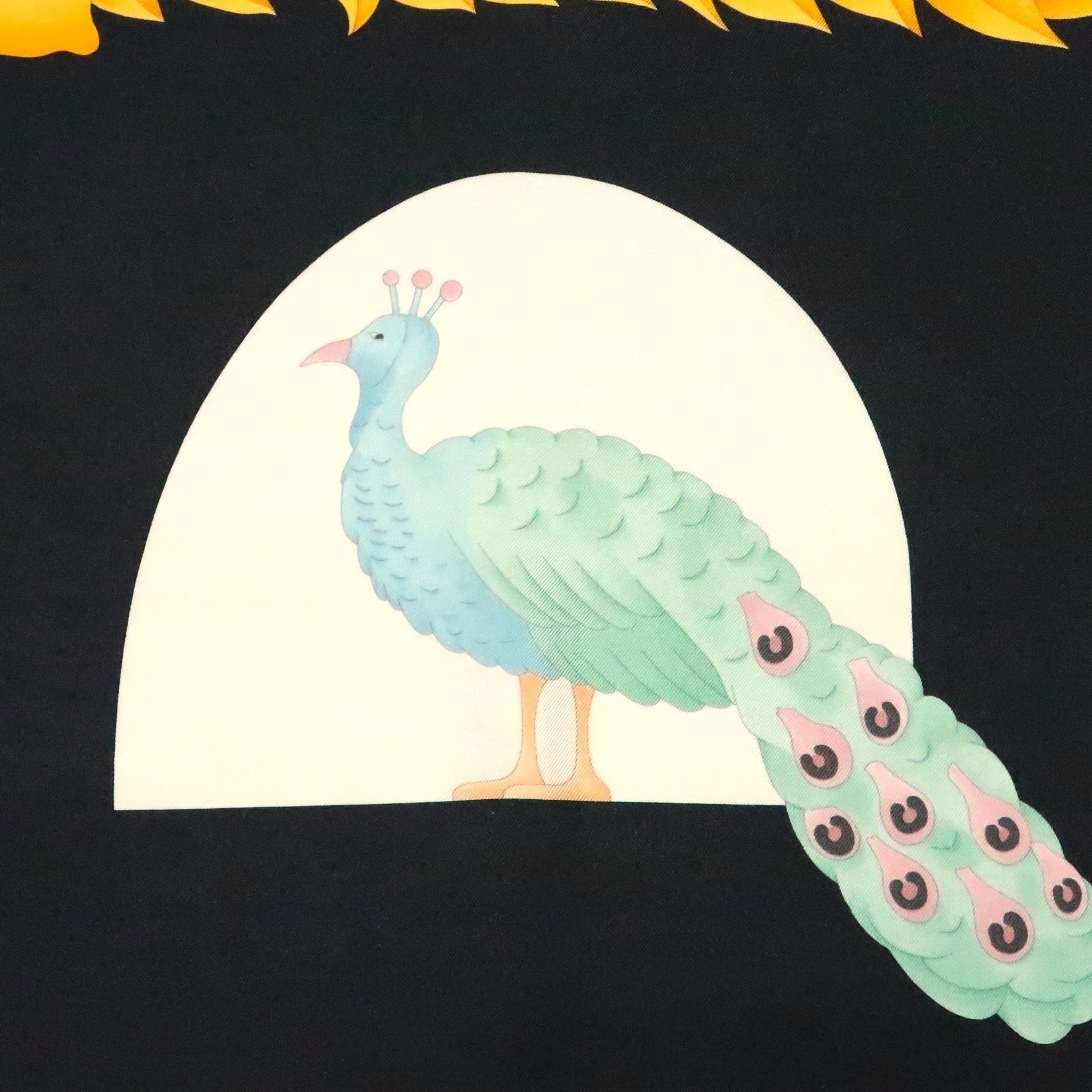 ブルガリ BVLGARI/スカーフ 帽子 クジャク ブラック イエロー 植物 果実 大判 シルク【中古】【S218】