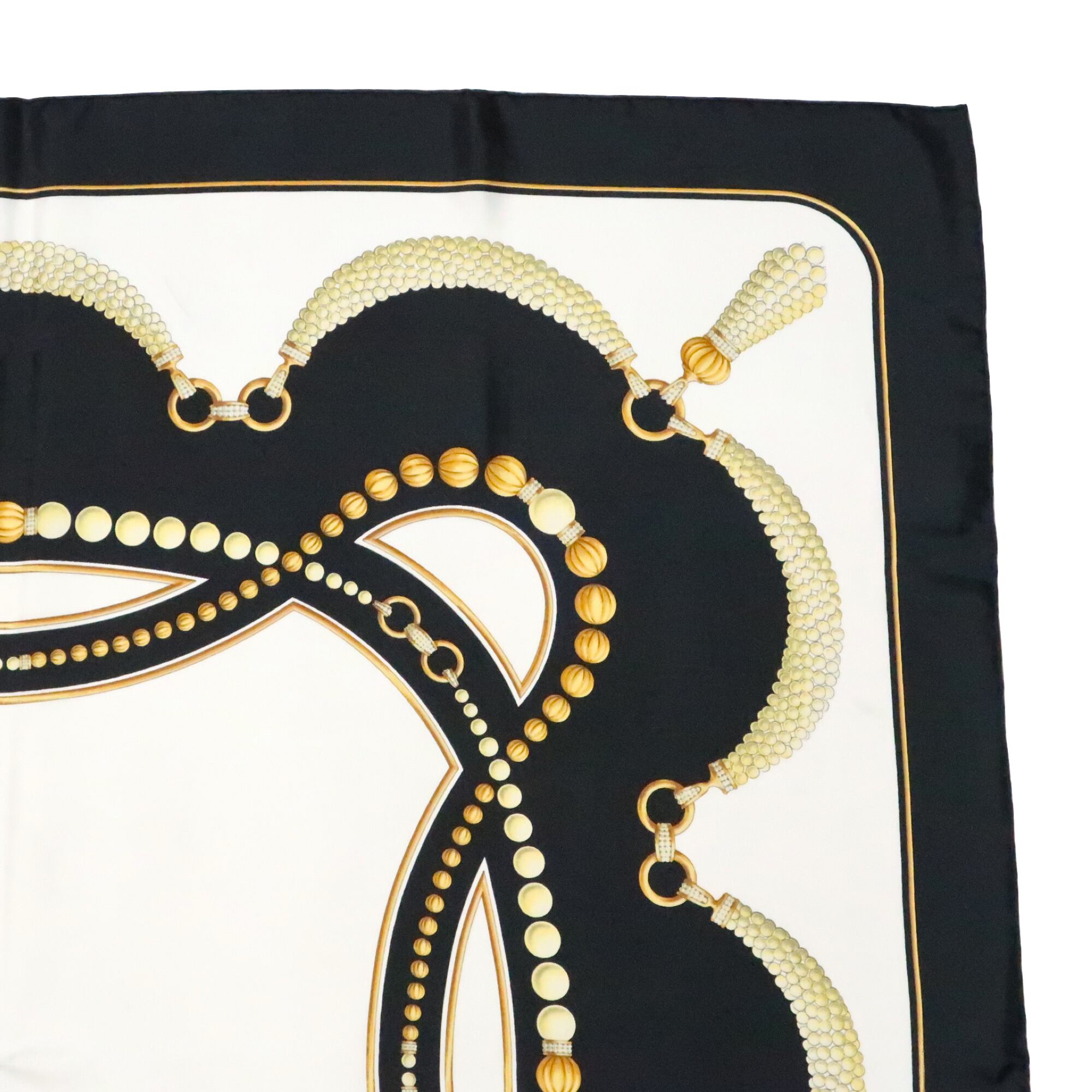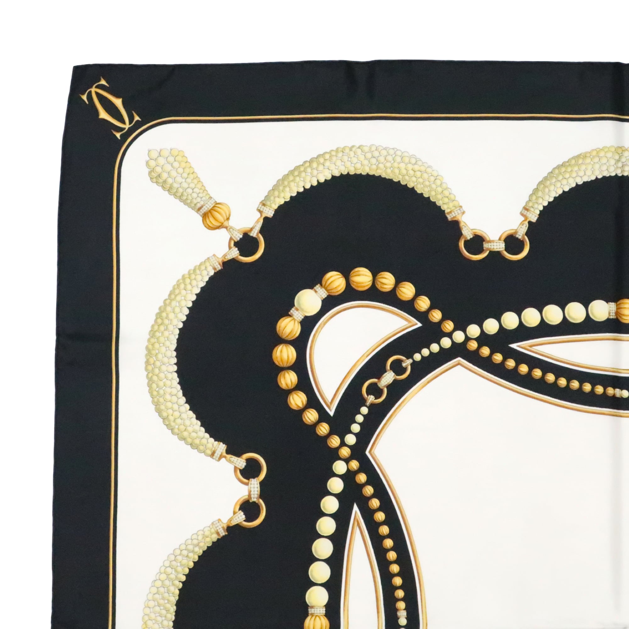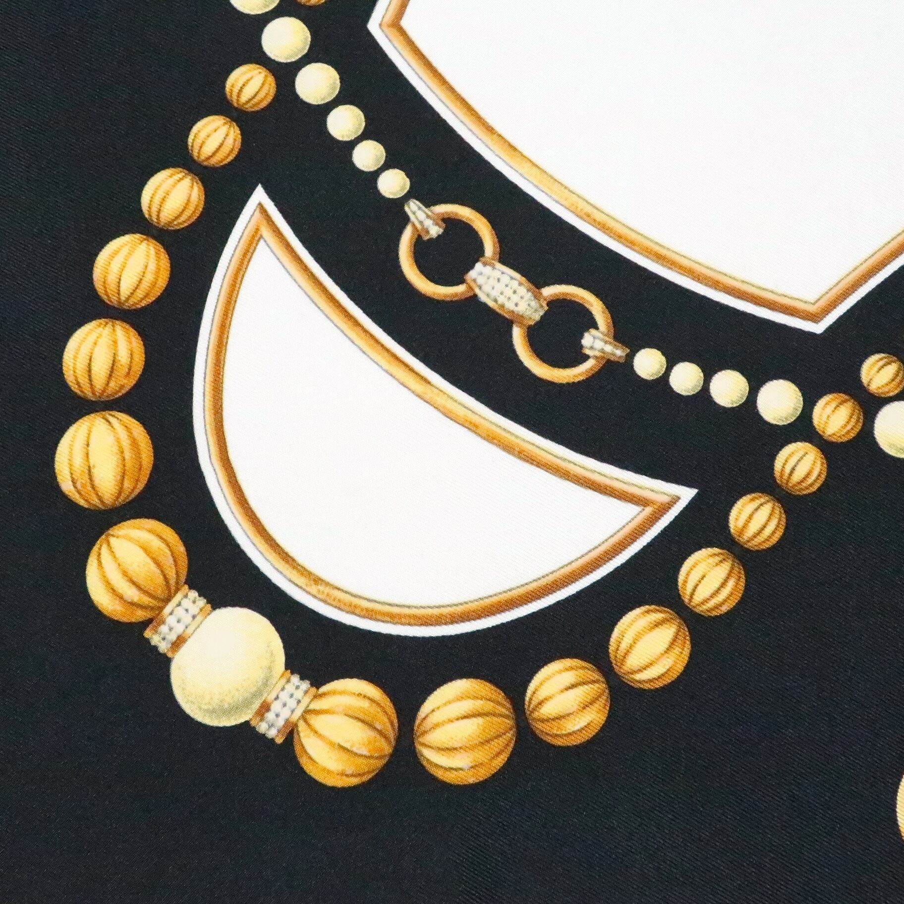 カルティエ Cartier/スカーフ パール ジュエリー ブラック ホワイト ロゴマーク アクセサリー シルク 大判【中古】【S223】