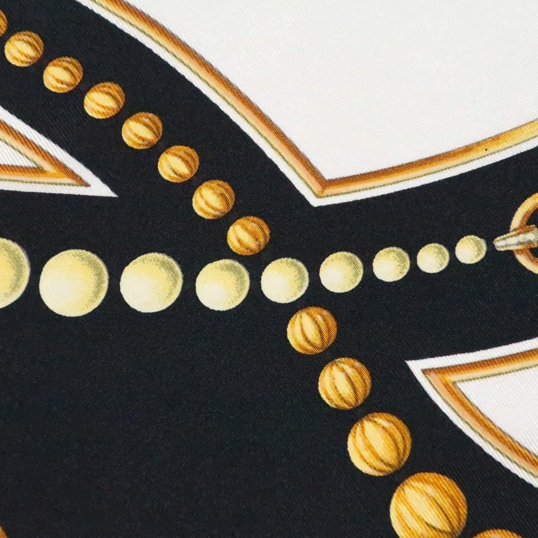 パールやリングが華やかなジュエリー柄スカーフ。