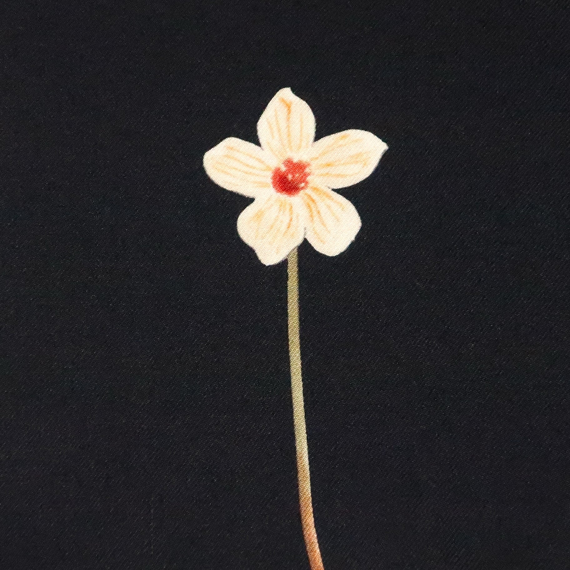 繊細なタッチで描かれた赤や白の花。