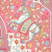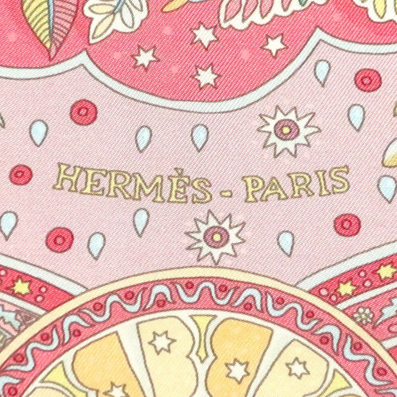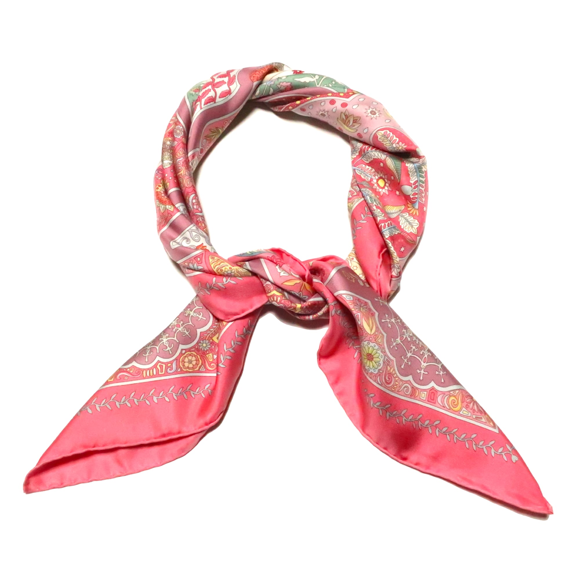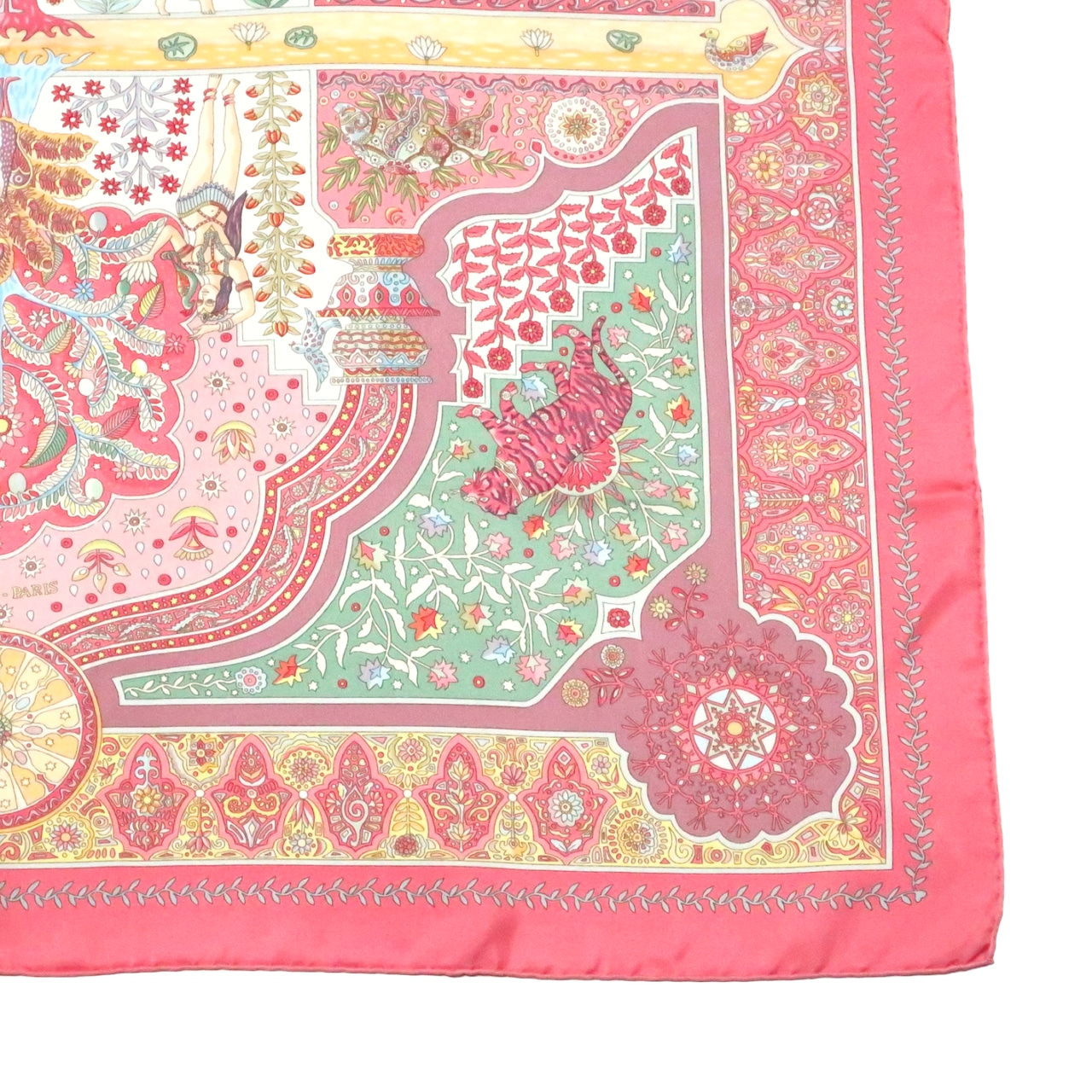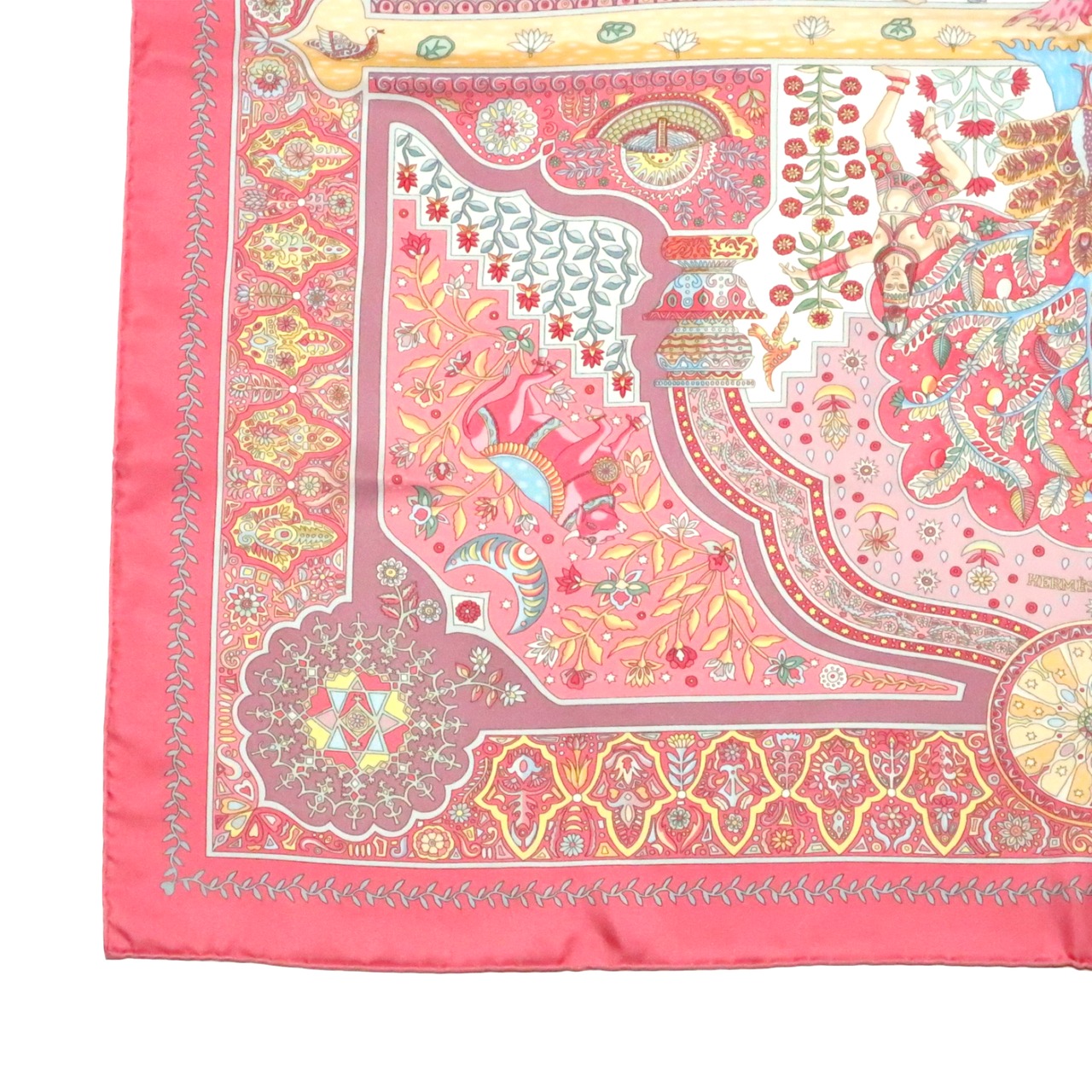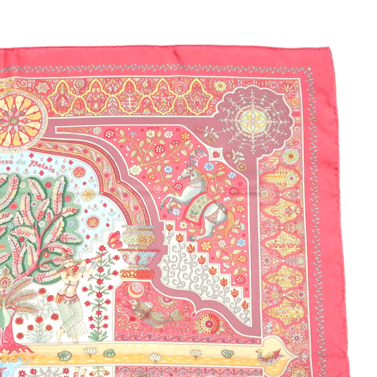エルメス HERMES/スカーフ カレ90 王宮の扉 Aux Portes du Palais 植物 動物 ピンク カラフル 民族模様 伝統 大判 シルク【中古】【S251】