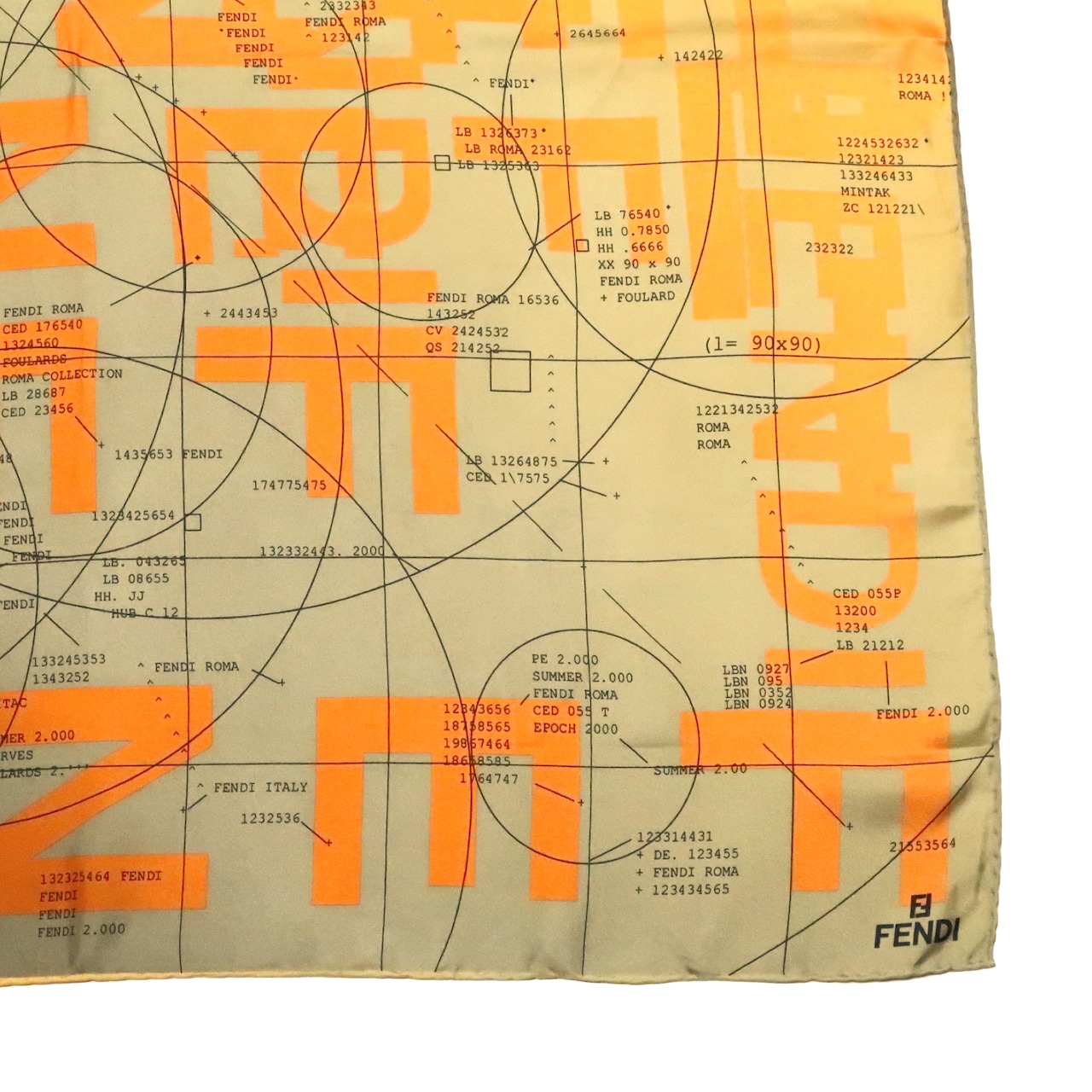 フェンディ FENDI/スカーフ ブランドロゴ グラデーション イエロー グレー 図形 記号 シルク 大判【中古】【S253】