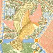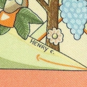 エルメス HERMES/スカーフ カレ90 世界の中心軸 Axis Mundi 植物 動物 サーモンピンク カラフル 花 仮面 大判 シルク【中古】【S255】