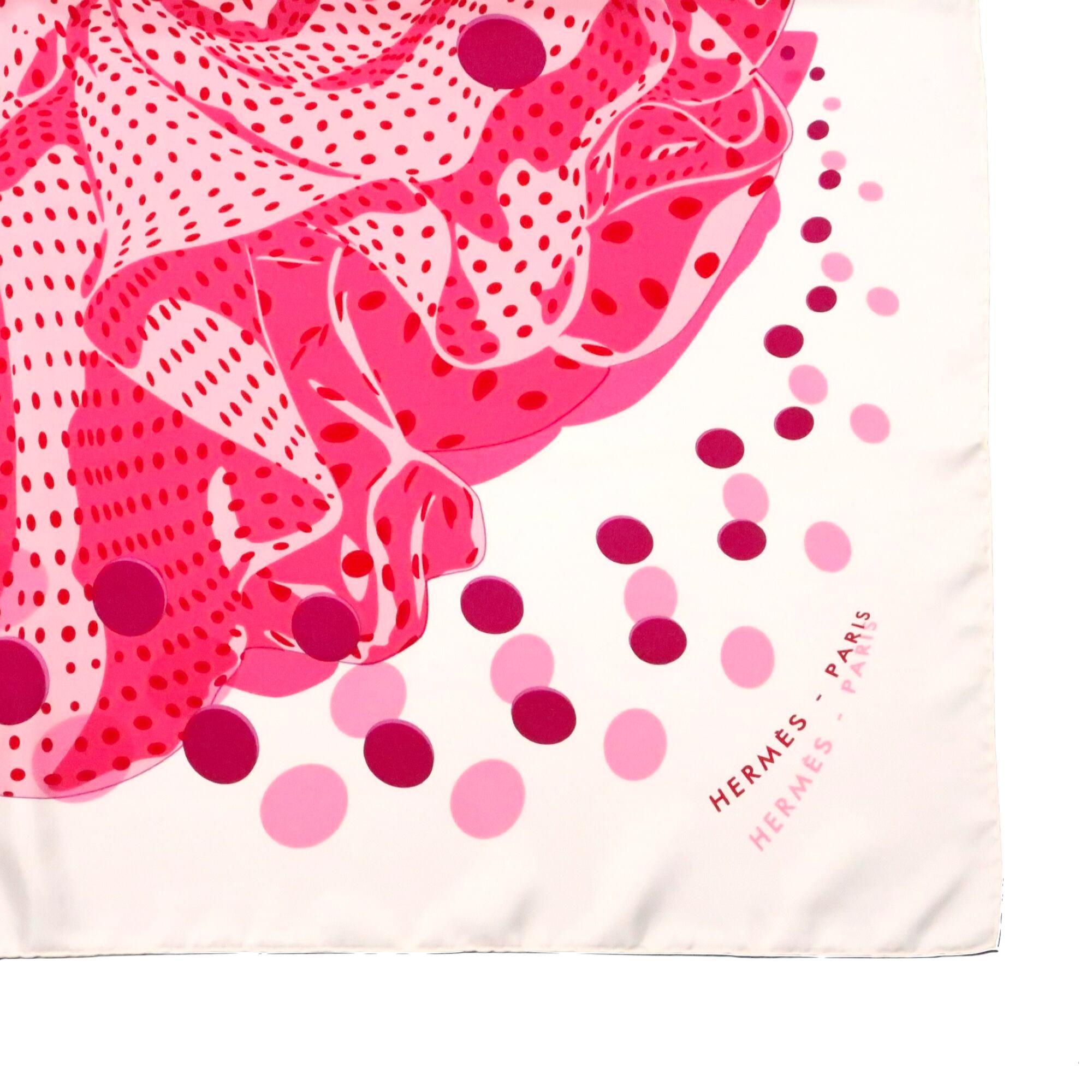 エルメス HERMES/スカーフ カレ90 オラ・フラメンカ i HOLA FLAMENCA! 踊り フラメンコ ピンク ホワイト 女性 ドット 大判 シルク【中古】【S256】