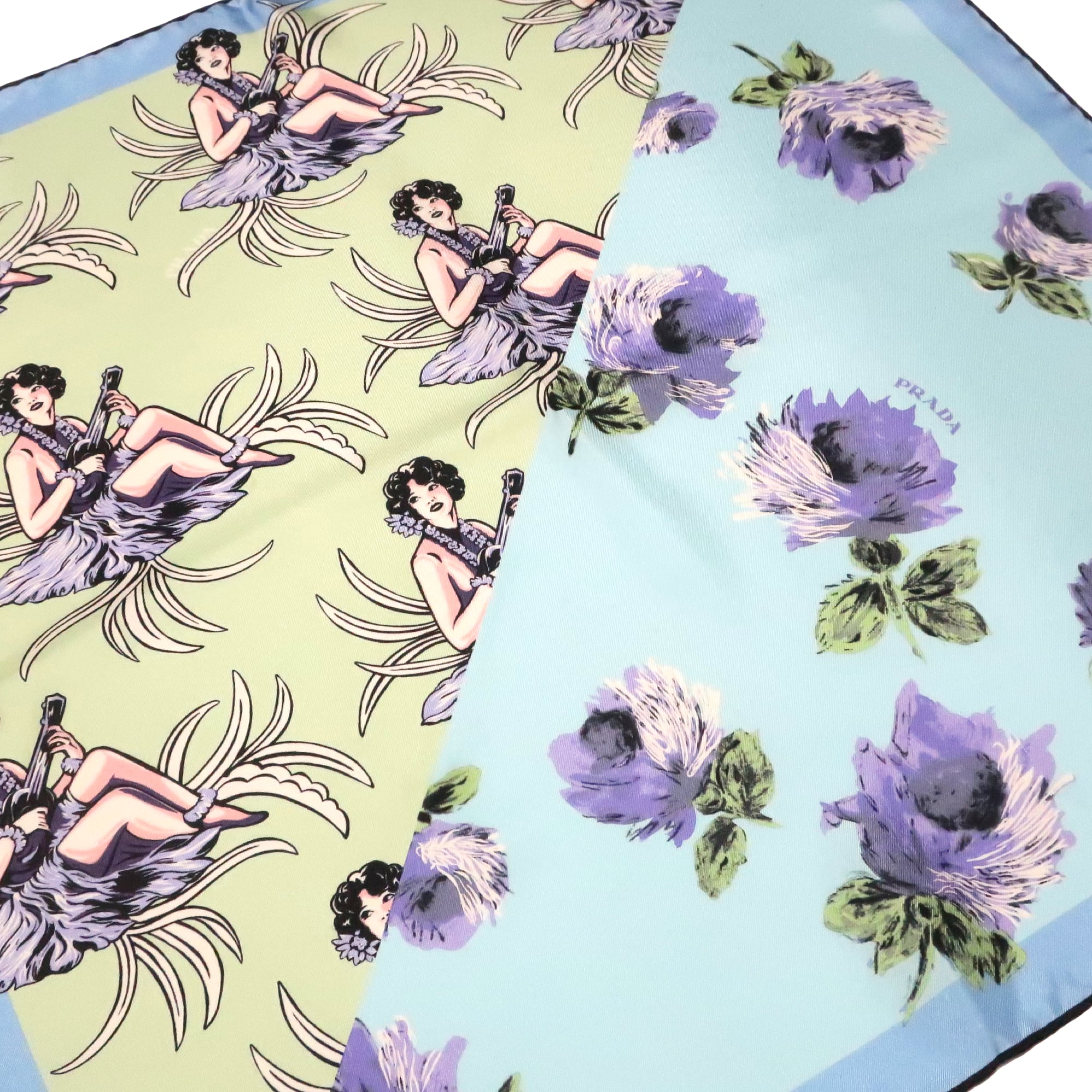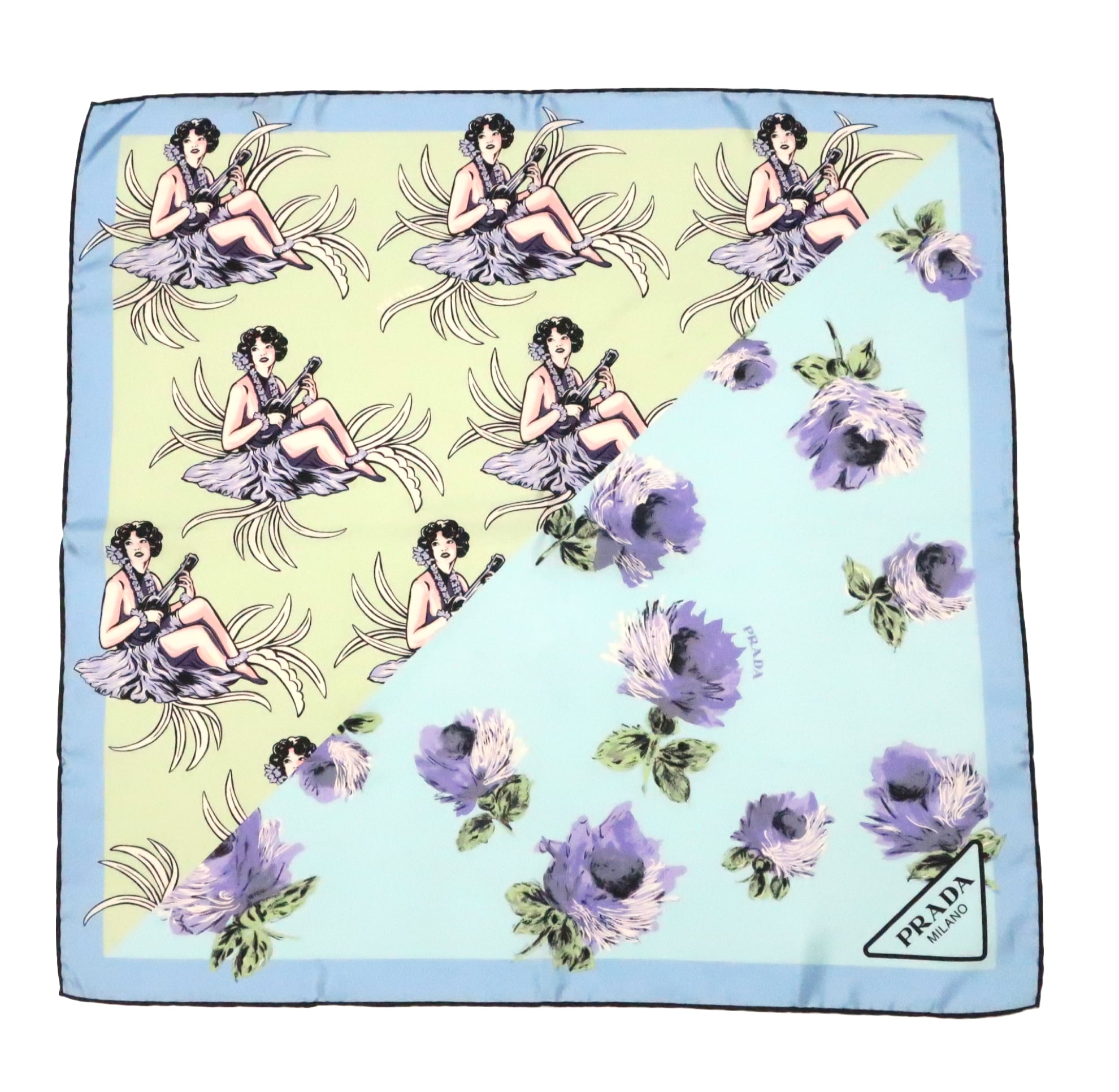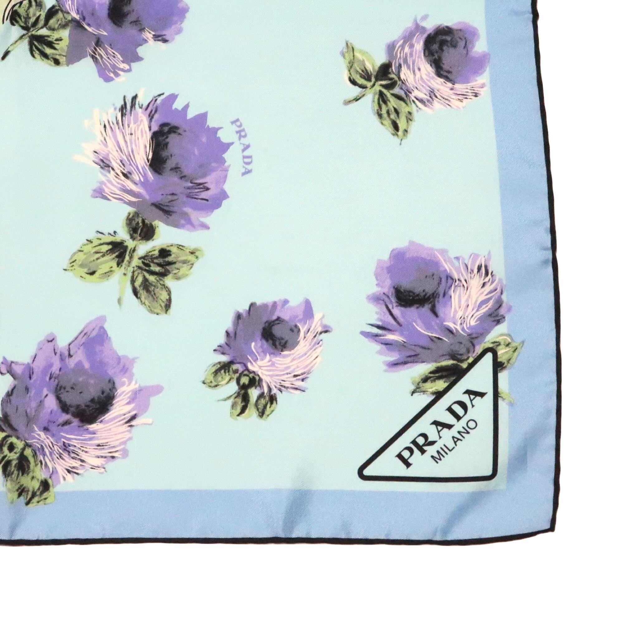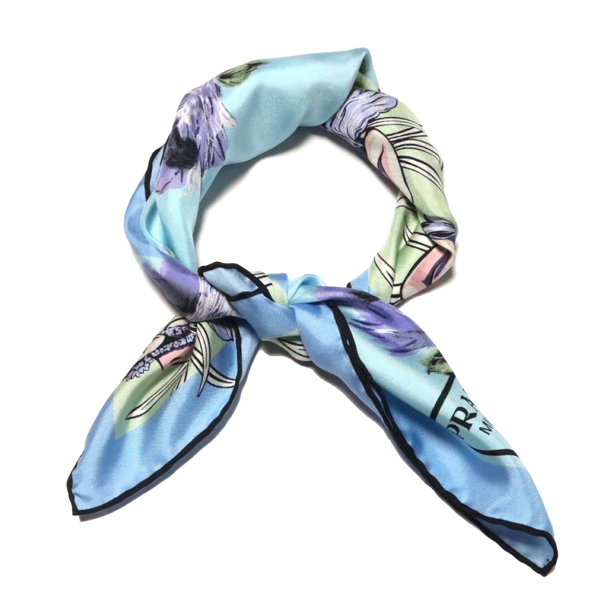 プラダ PRADA/スカーフ 花柄 トライアングルロゴ ブルー クリームイエロー 女性 ツートーン シルク【中古】【S258】