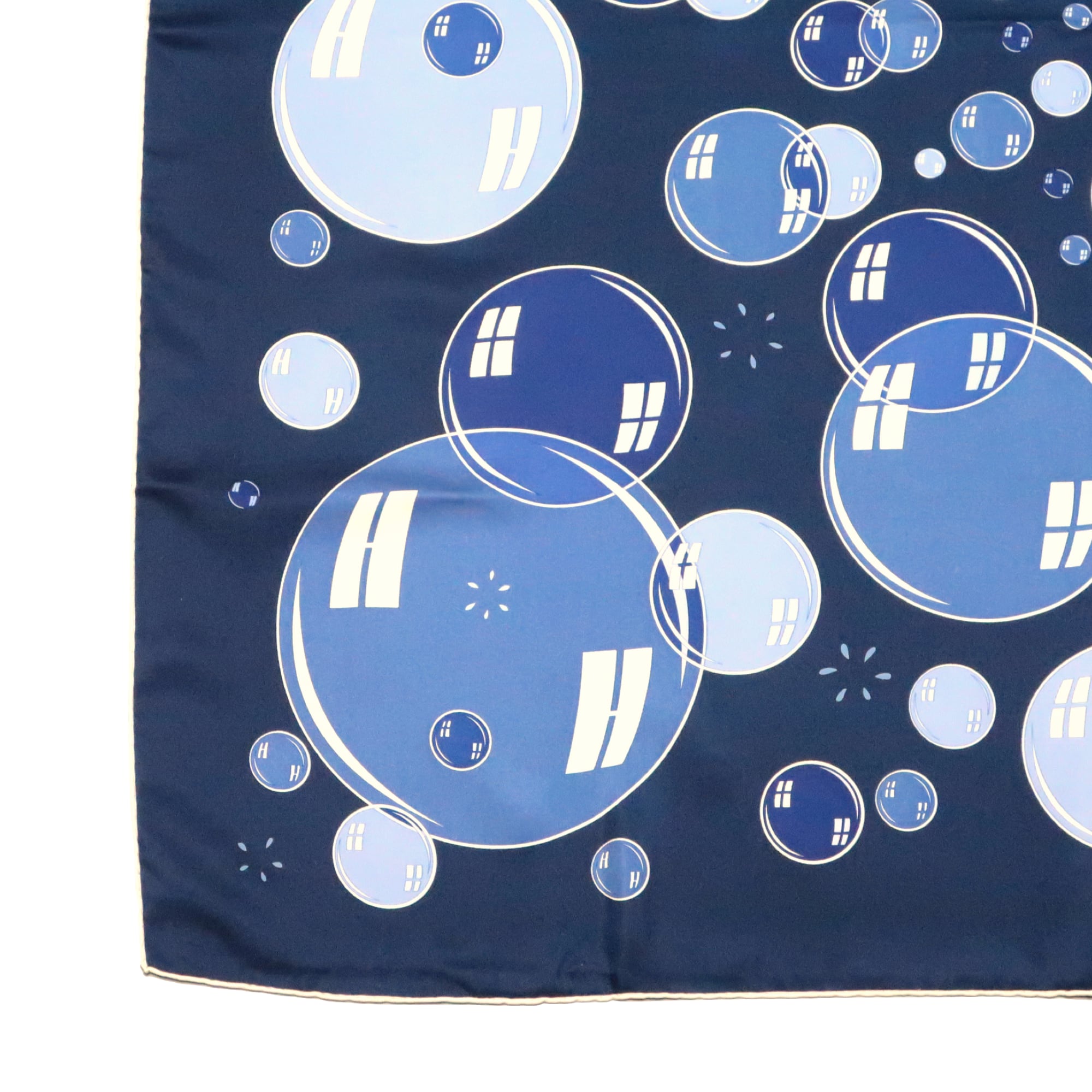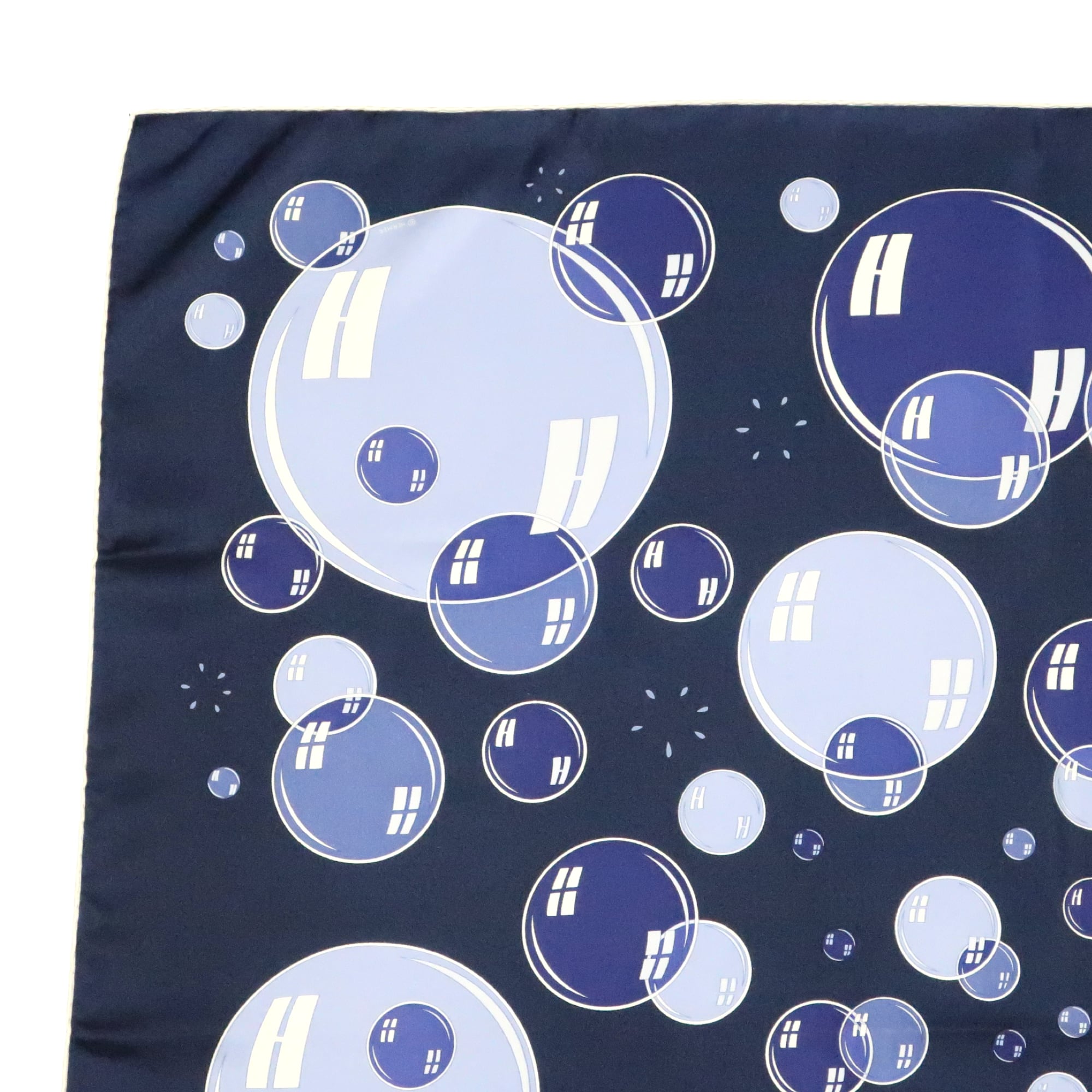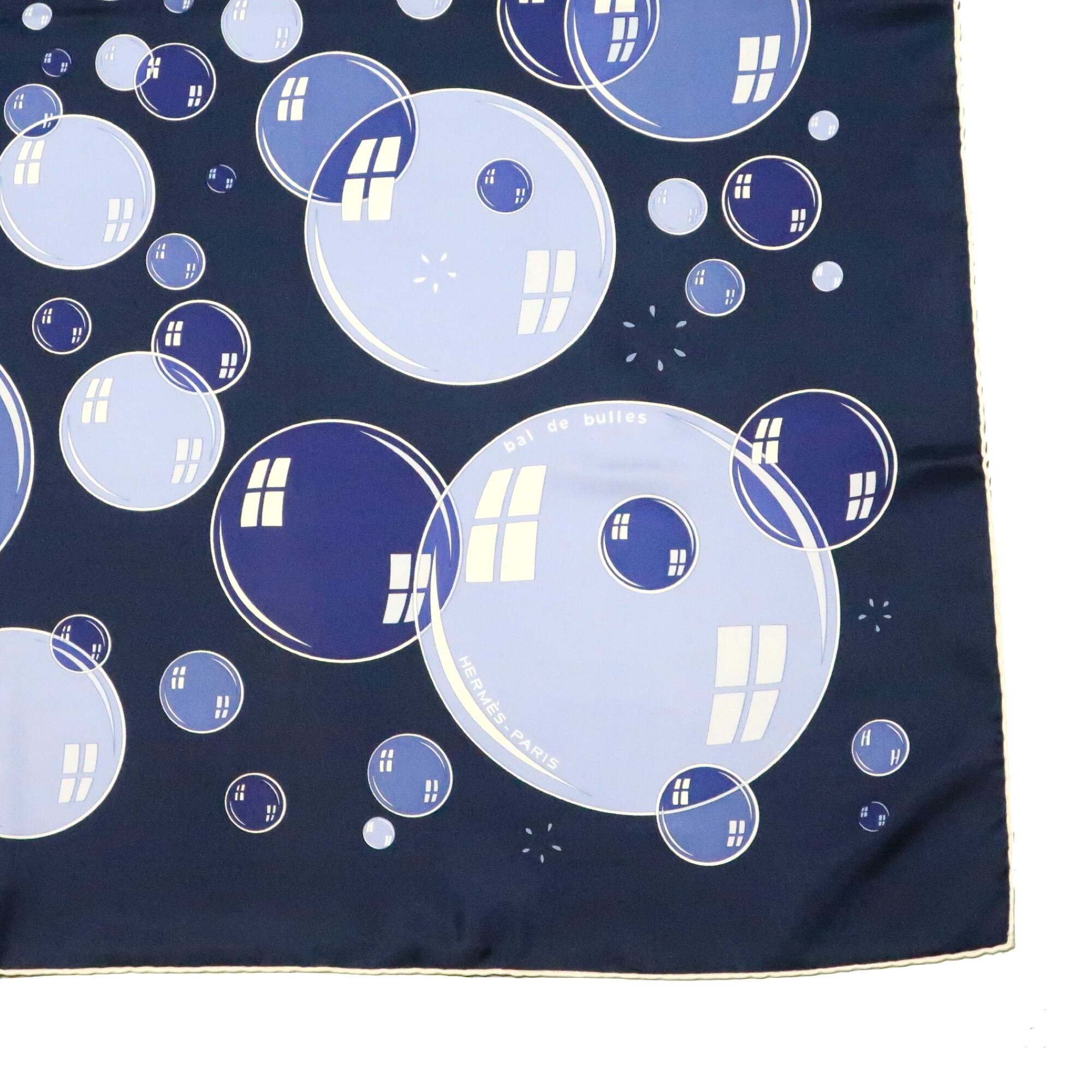 エルメス HERMES/スカーフ カレ90 シャボン玉 bal de bulles 泡 Hロゴ ネイビー ブルー 球体 窓 大判 シルク【中古】【S263】