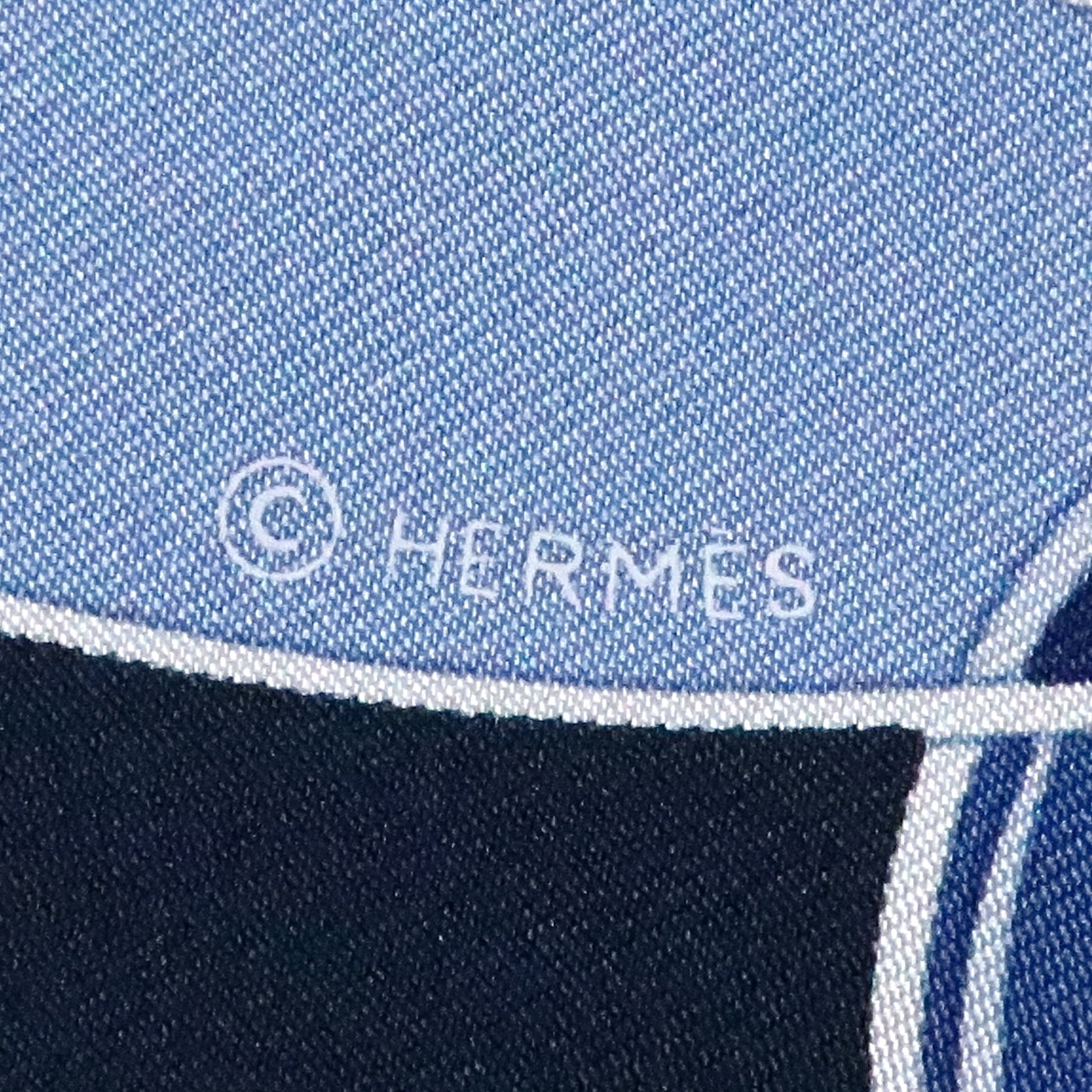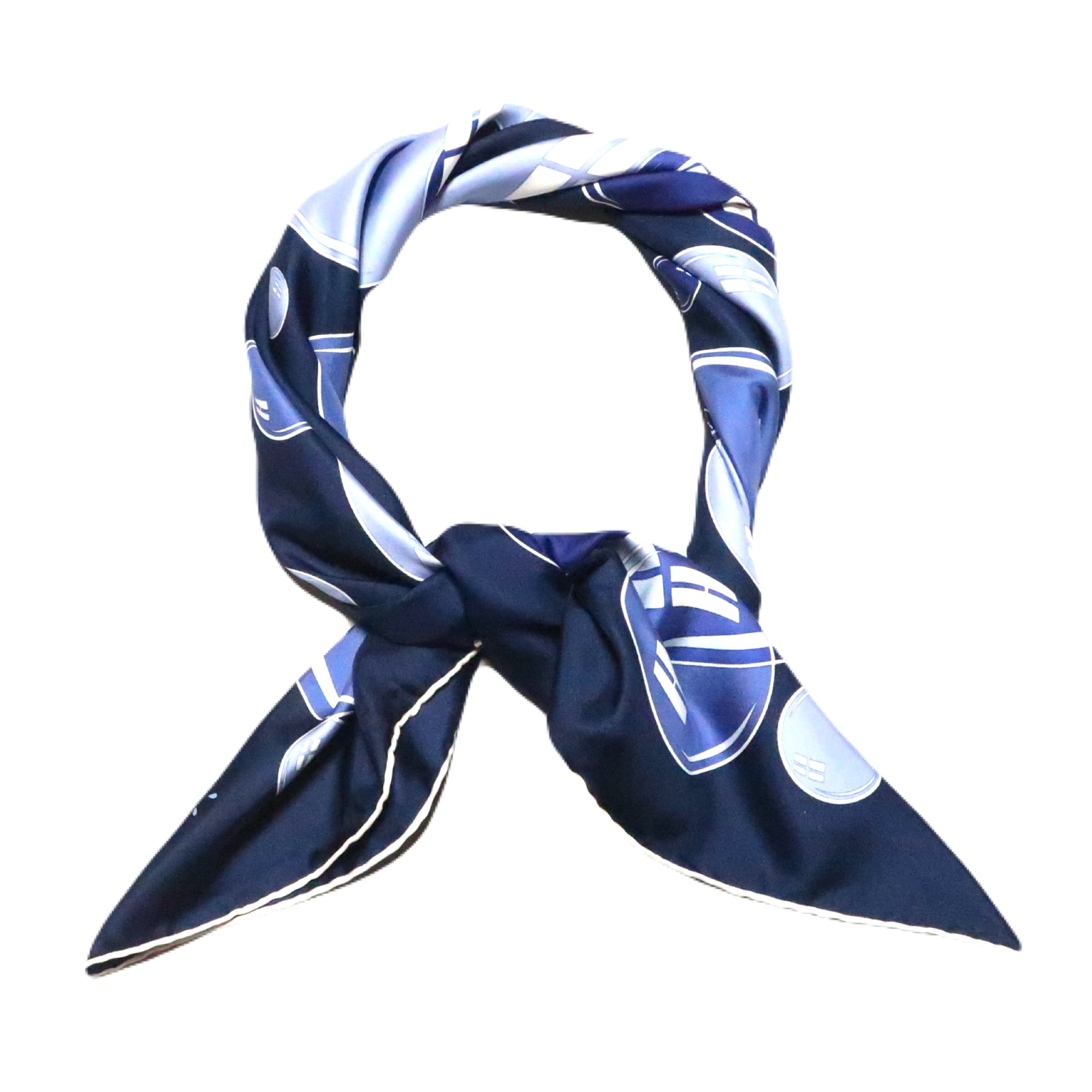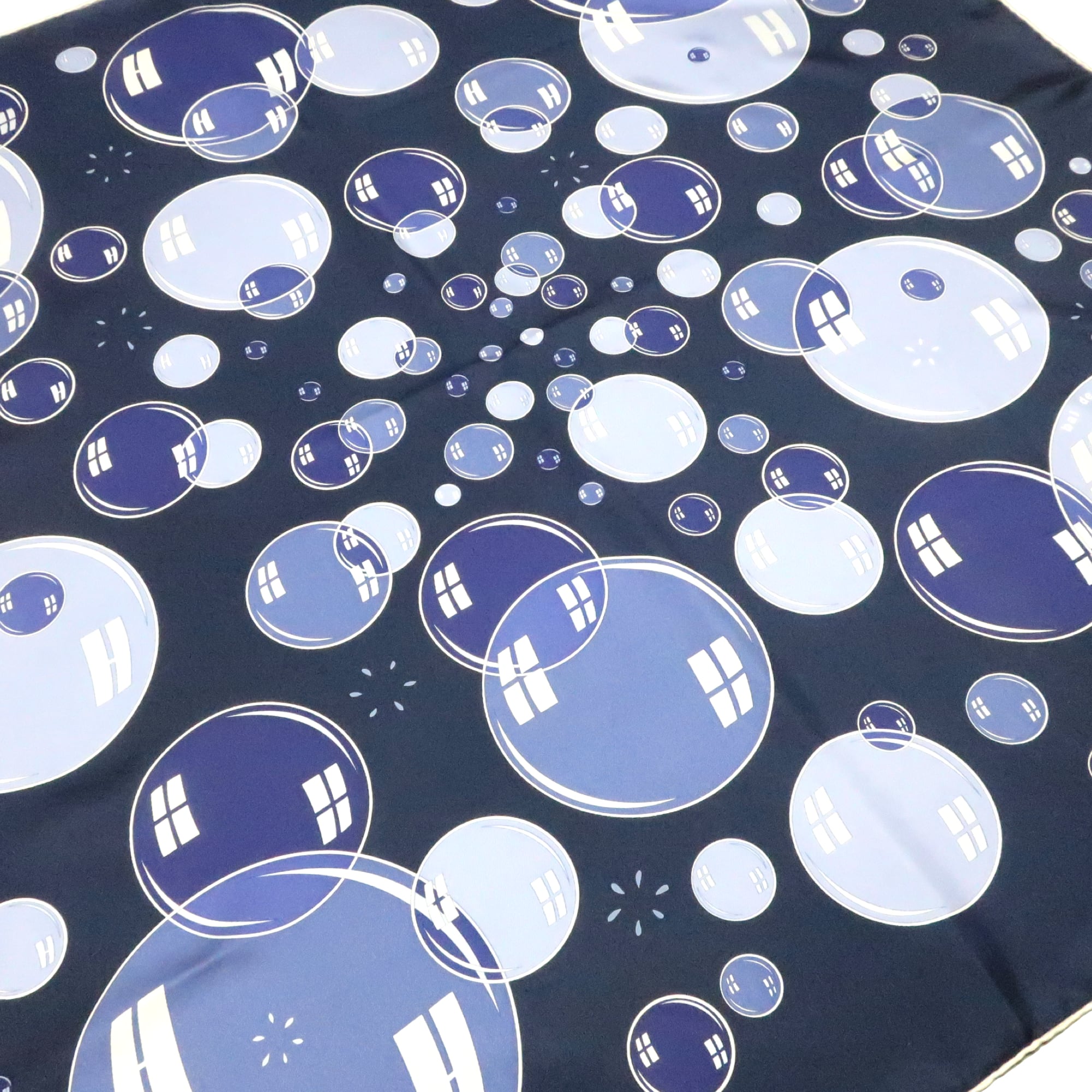 エルメス HERMES/スカーフ カレ90 シャボン玉 bal de bulles 泡 Hロゴ ネイビー ブルー 球体 窓 大判 シルク【中古】【S263】