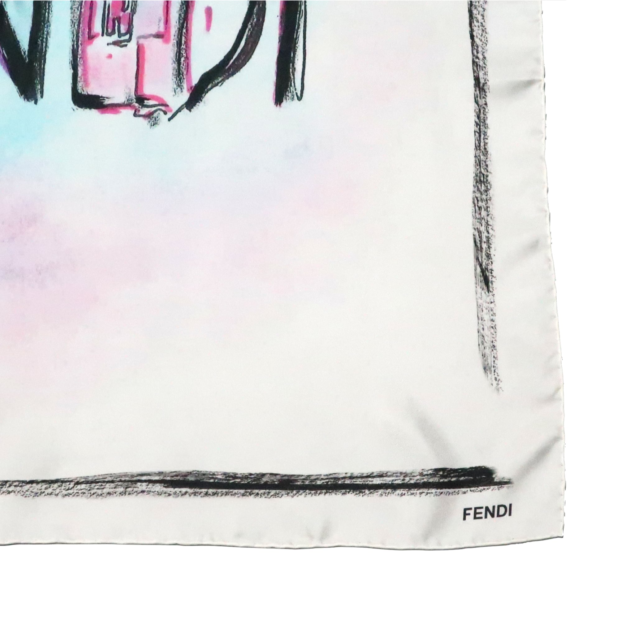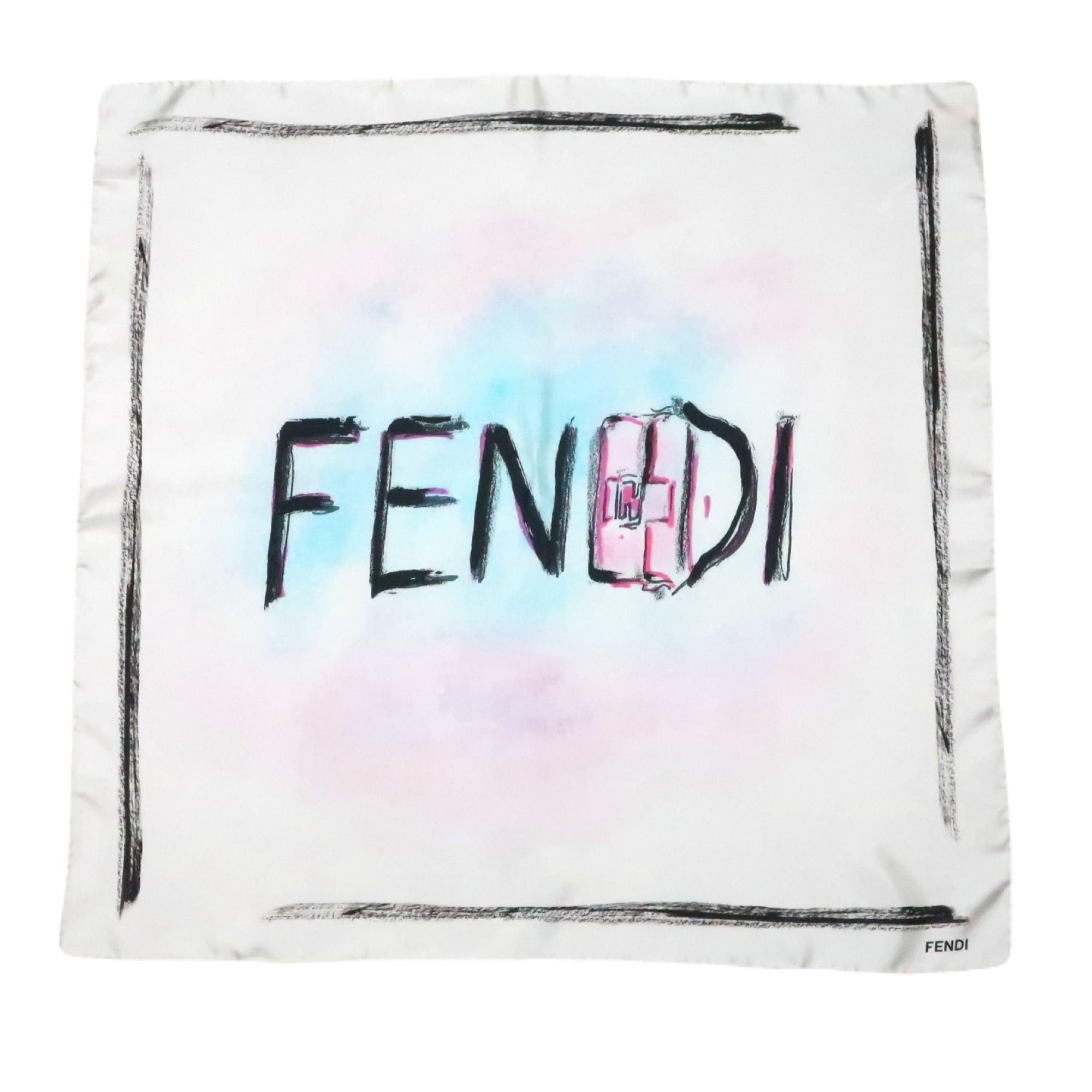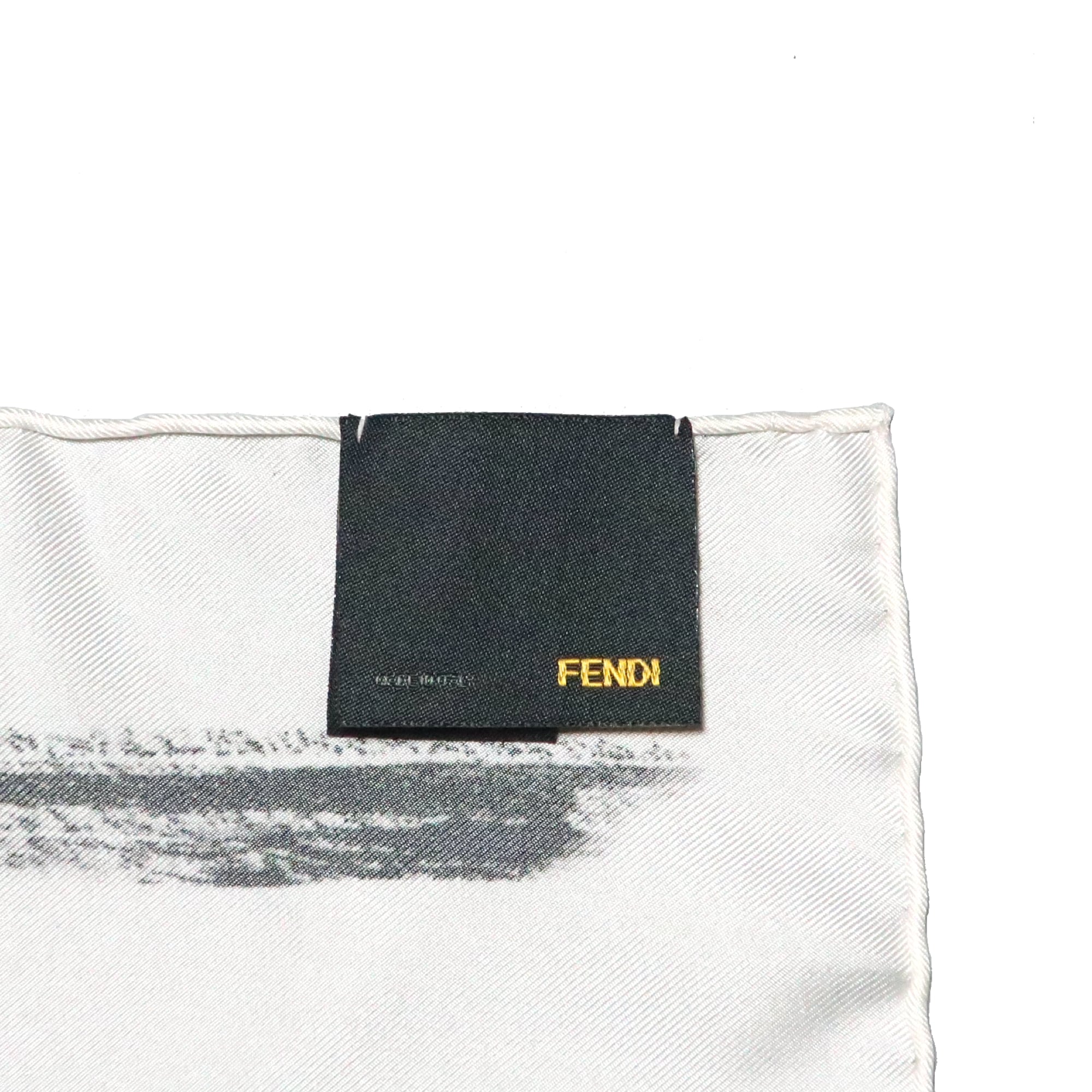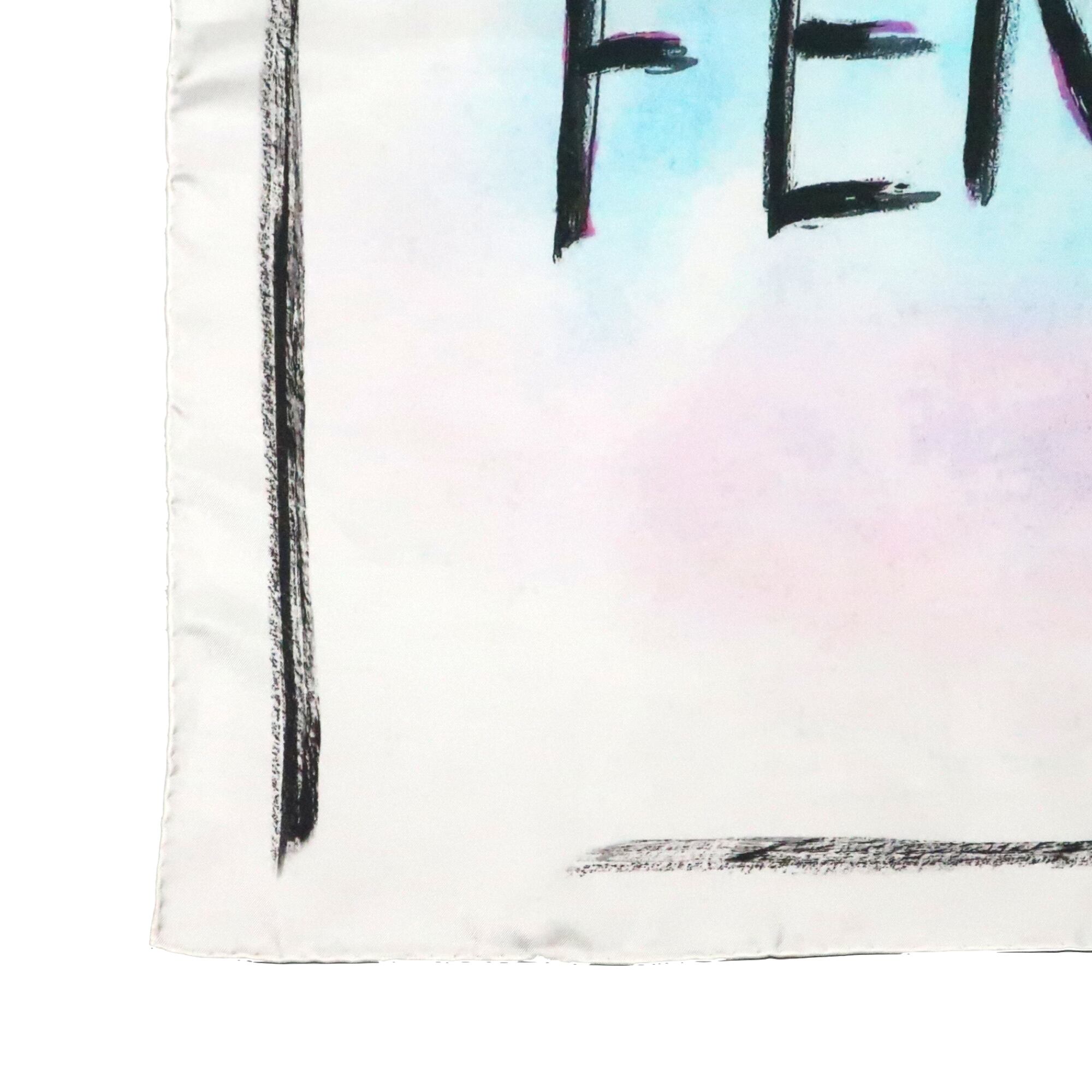 フェンディ FENDI/スカーフ ブランドロゴ 手書き文字 ホワイト ブラック バゲット バッグ シルク【中古】【S264】