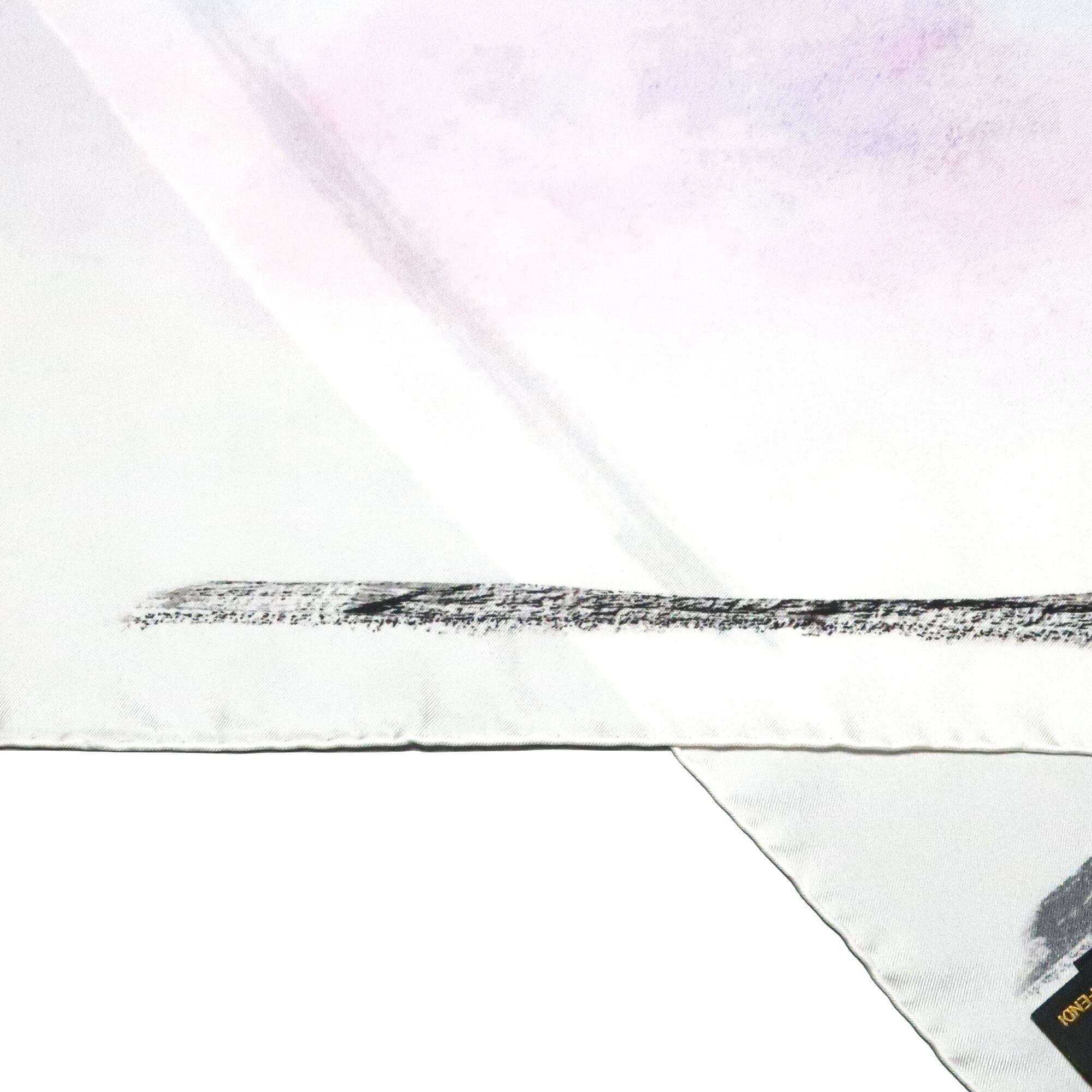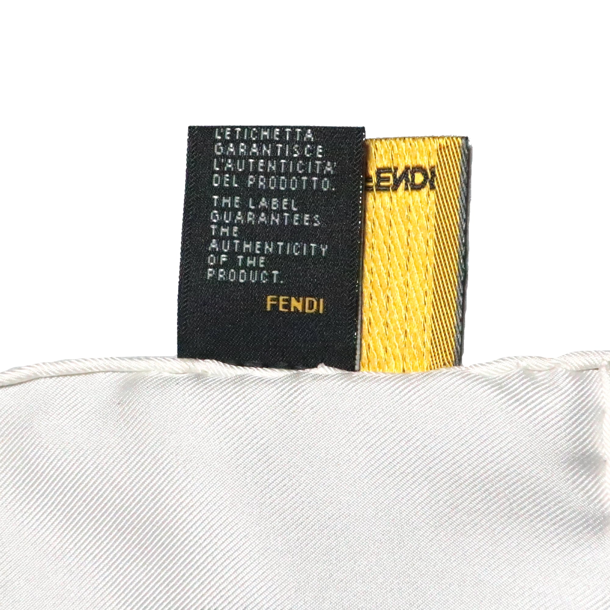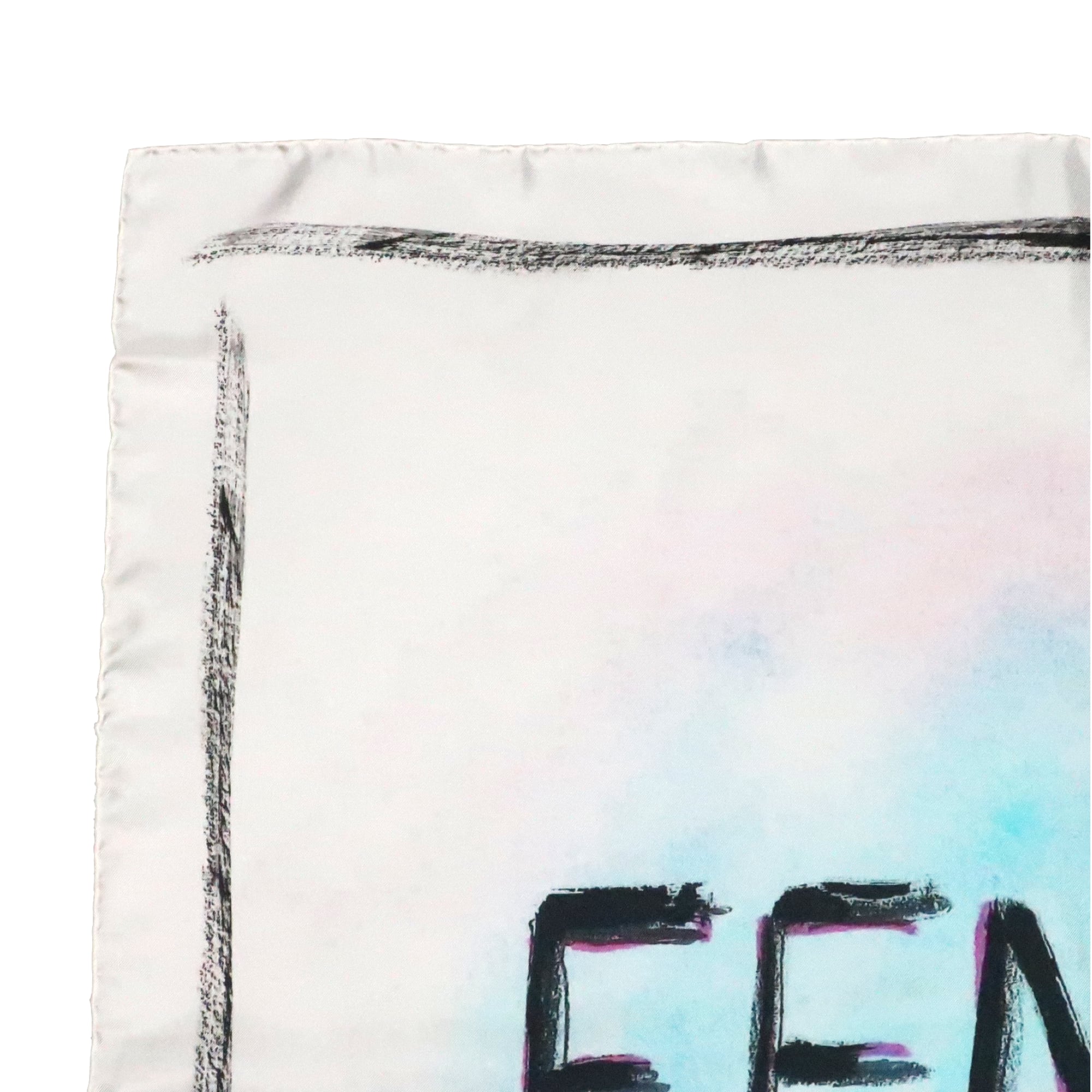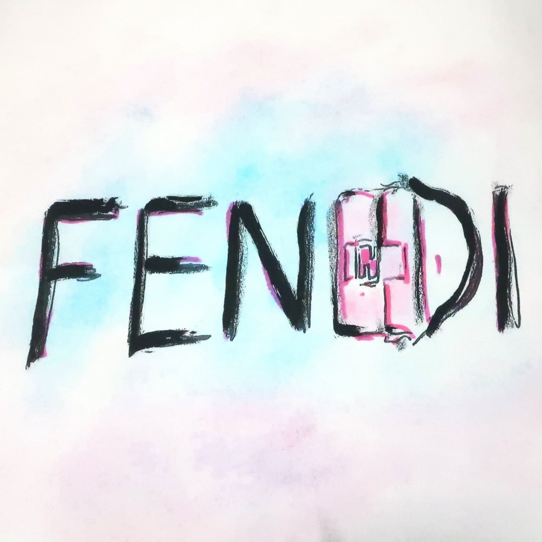 フェンディ FENDI/スカーフ ブランドロゴ 手書き文字 ホワイト ブラック バゲット バッグ シルク【中古】【S264】
