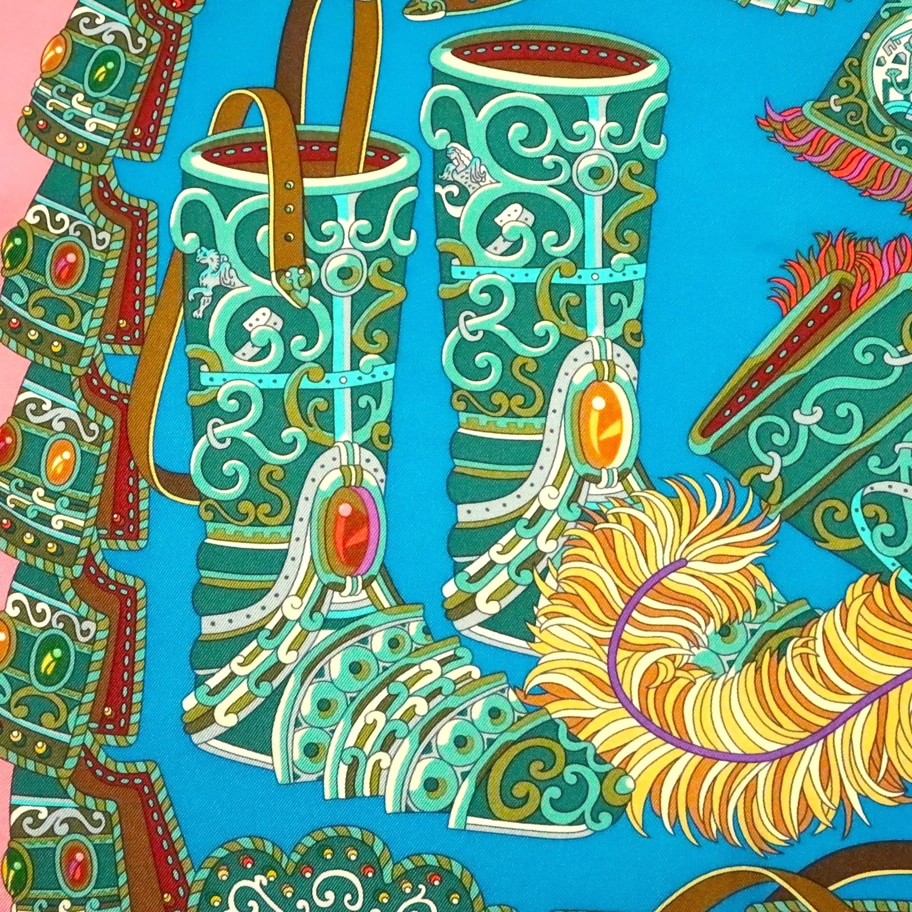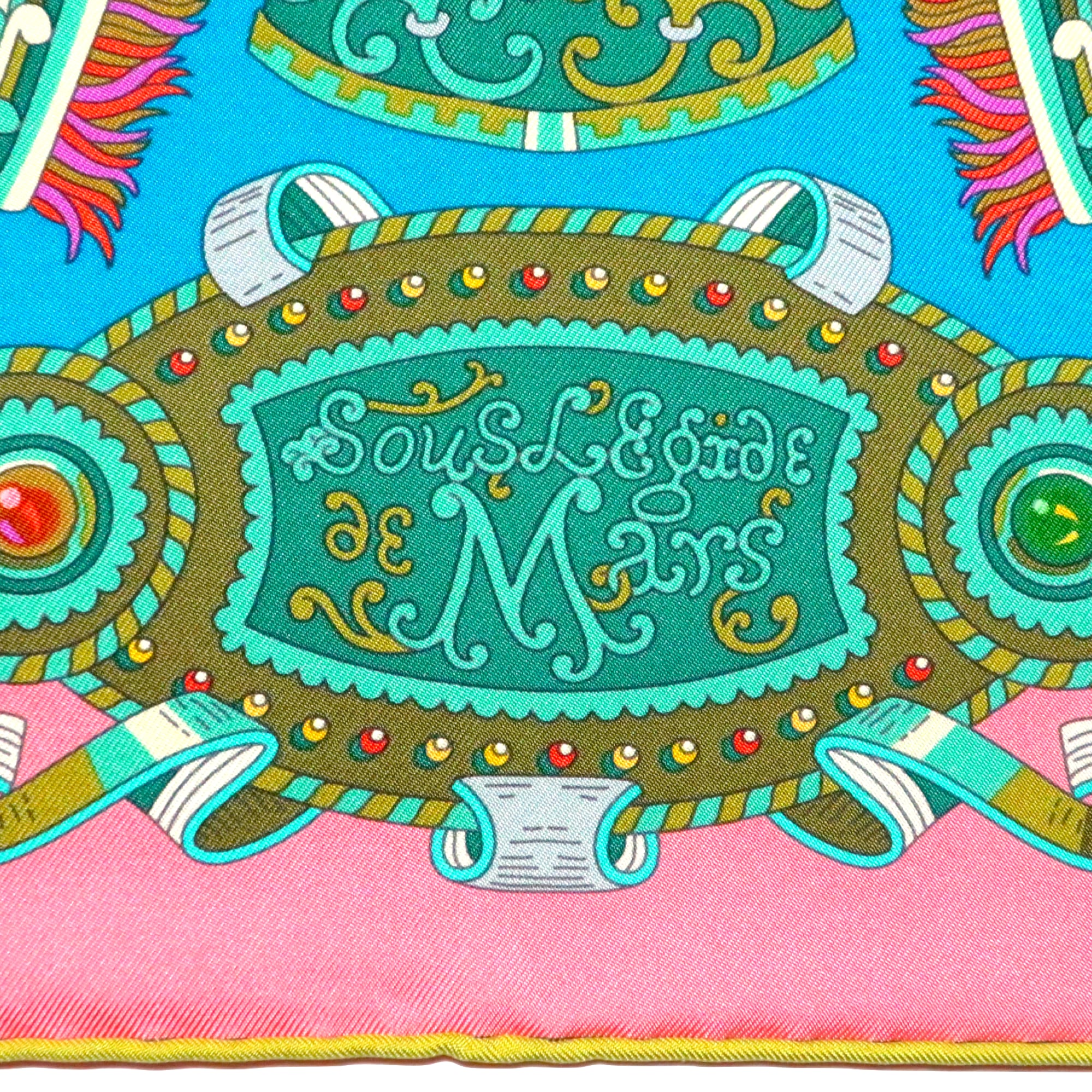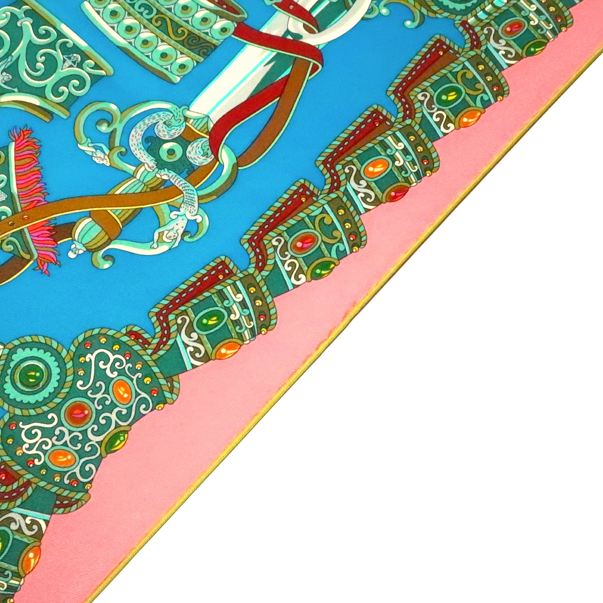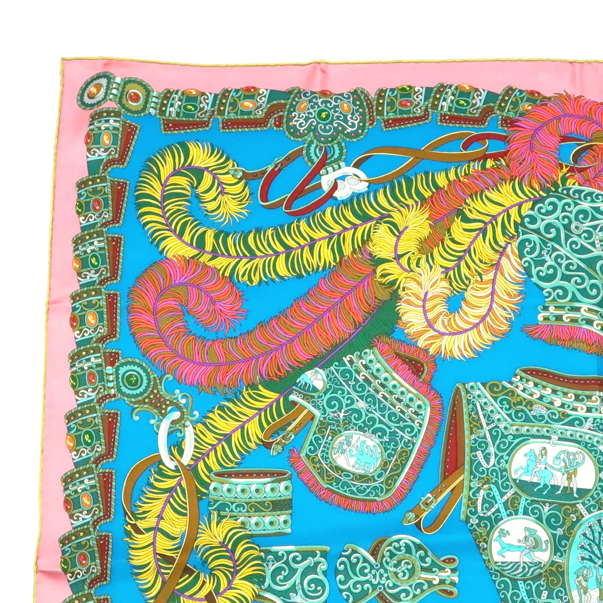 エルメス HERMES/スカーフ カレ90 軍神マルス SOUS LE GIDE DE MARS 甲冑 神話 ブルー ピンク ローマ 羽根飾り 大判 シルク【中古】【S270】