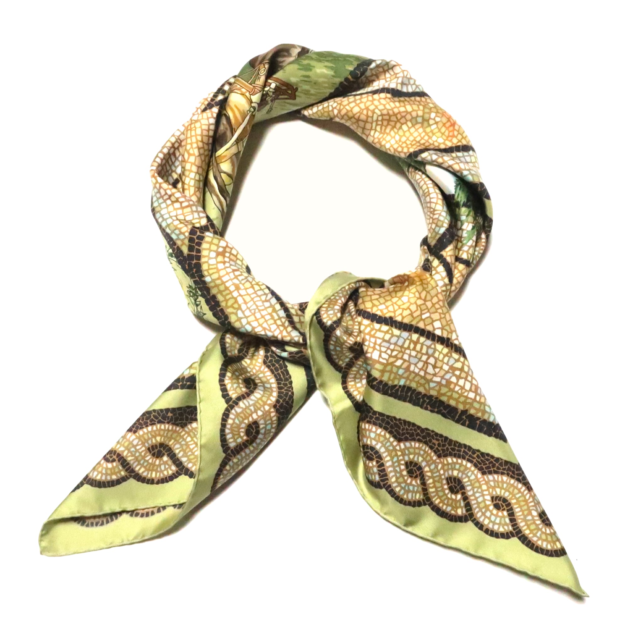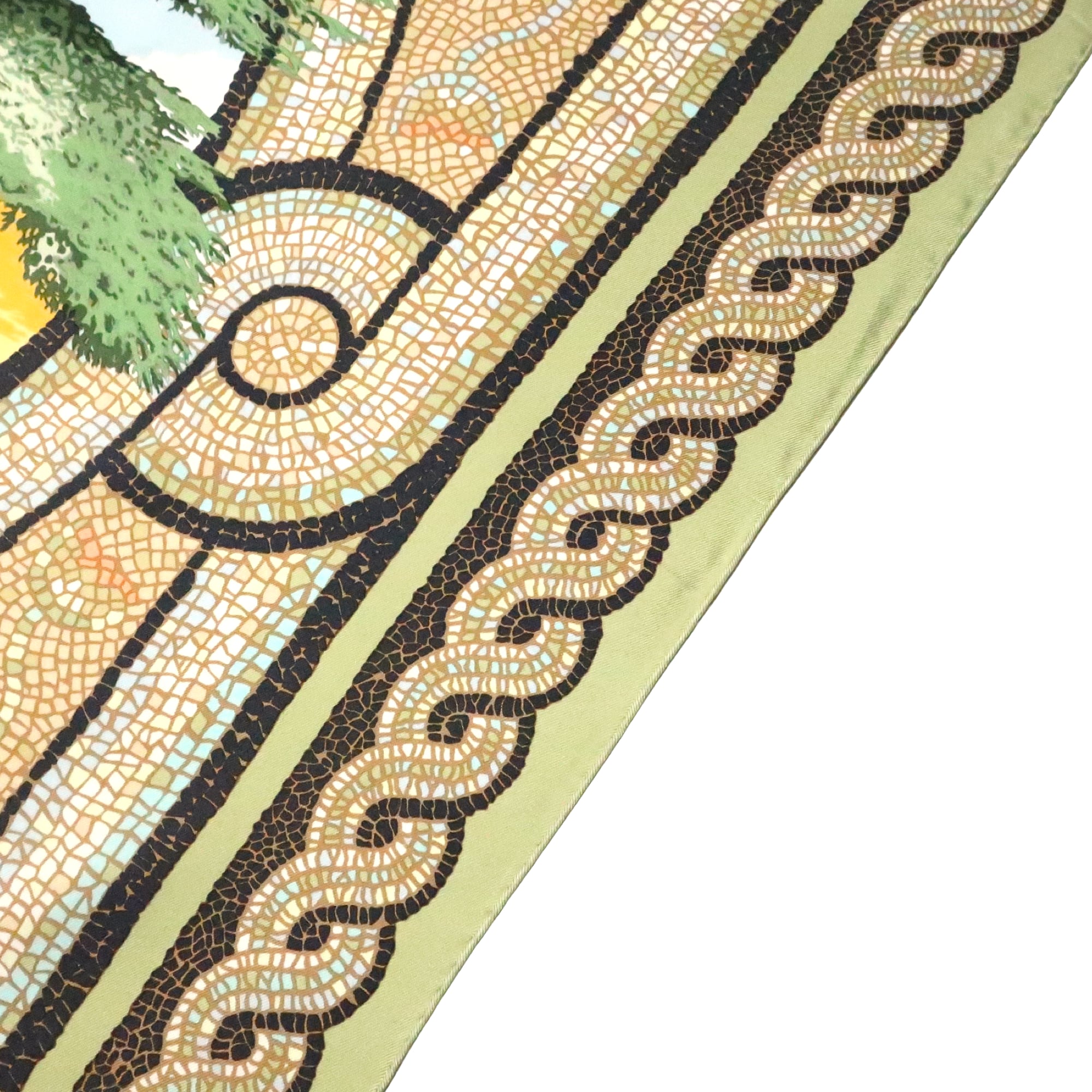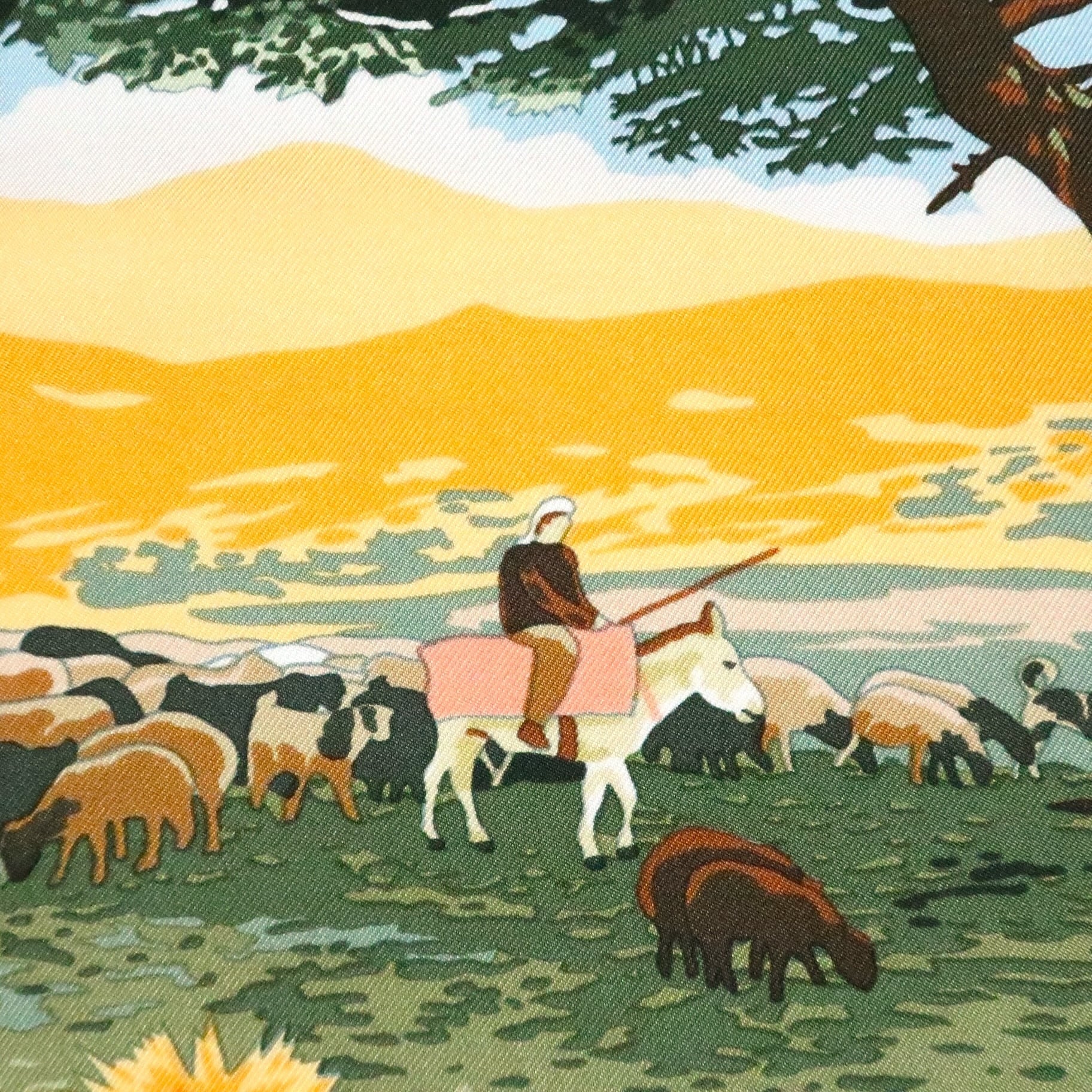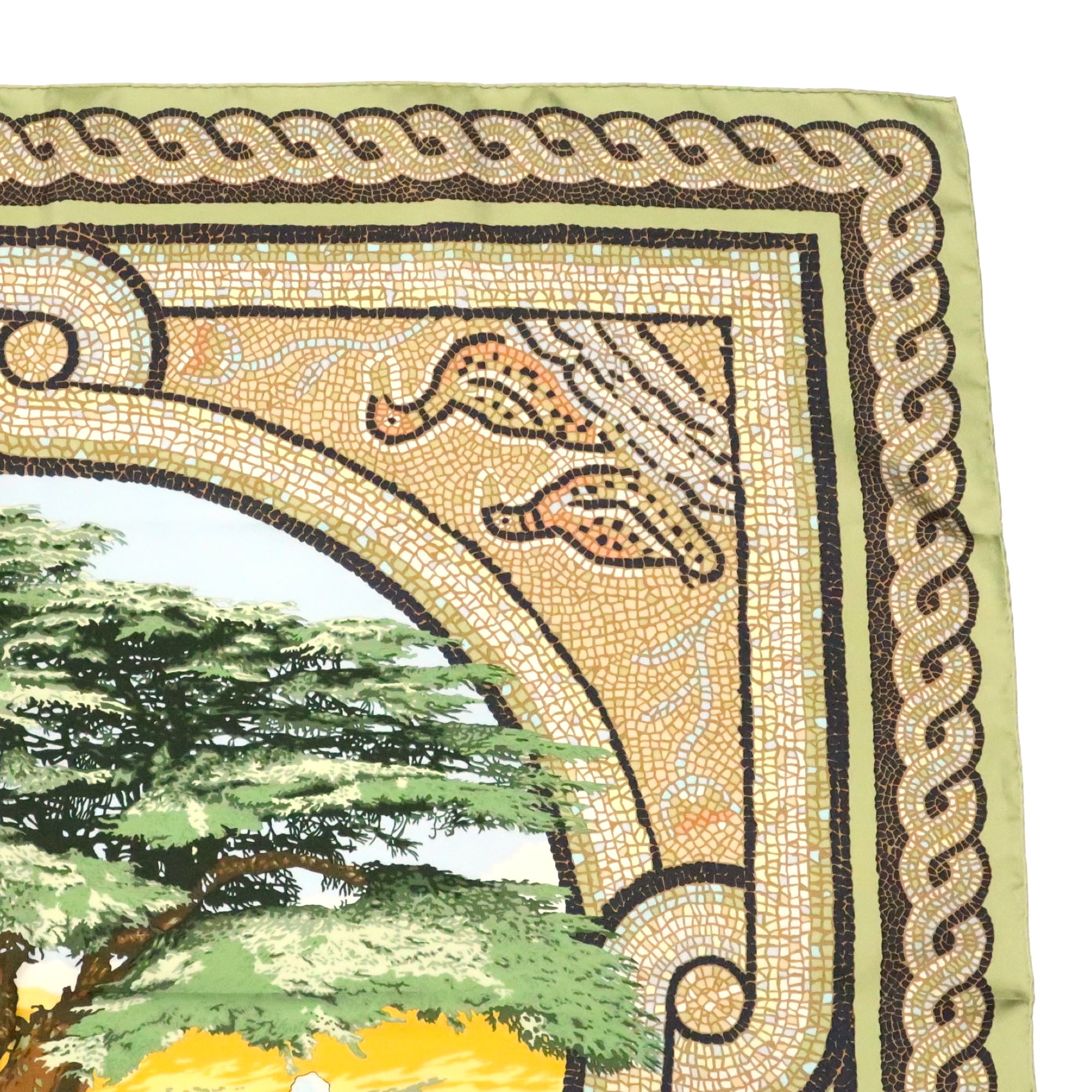 エルメス HERMES/スカーフ カレ90 ヒマラヤ杉の下で SOUS LE CEDRE 樹木 風景 グリーン イエロー タイル 動物 大判 シルク【中古】【S270】