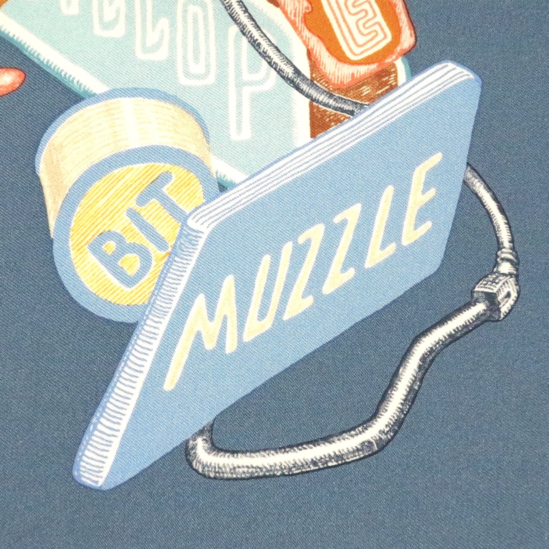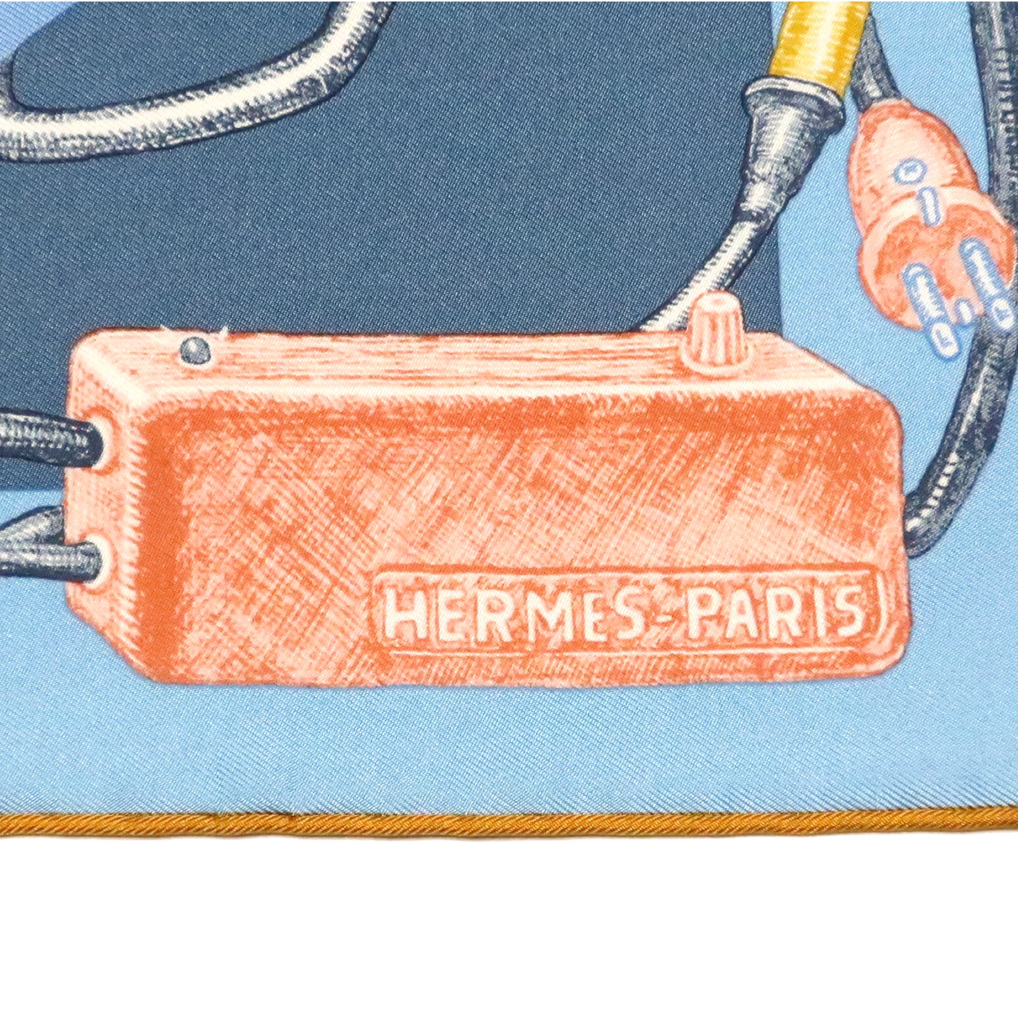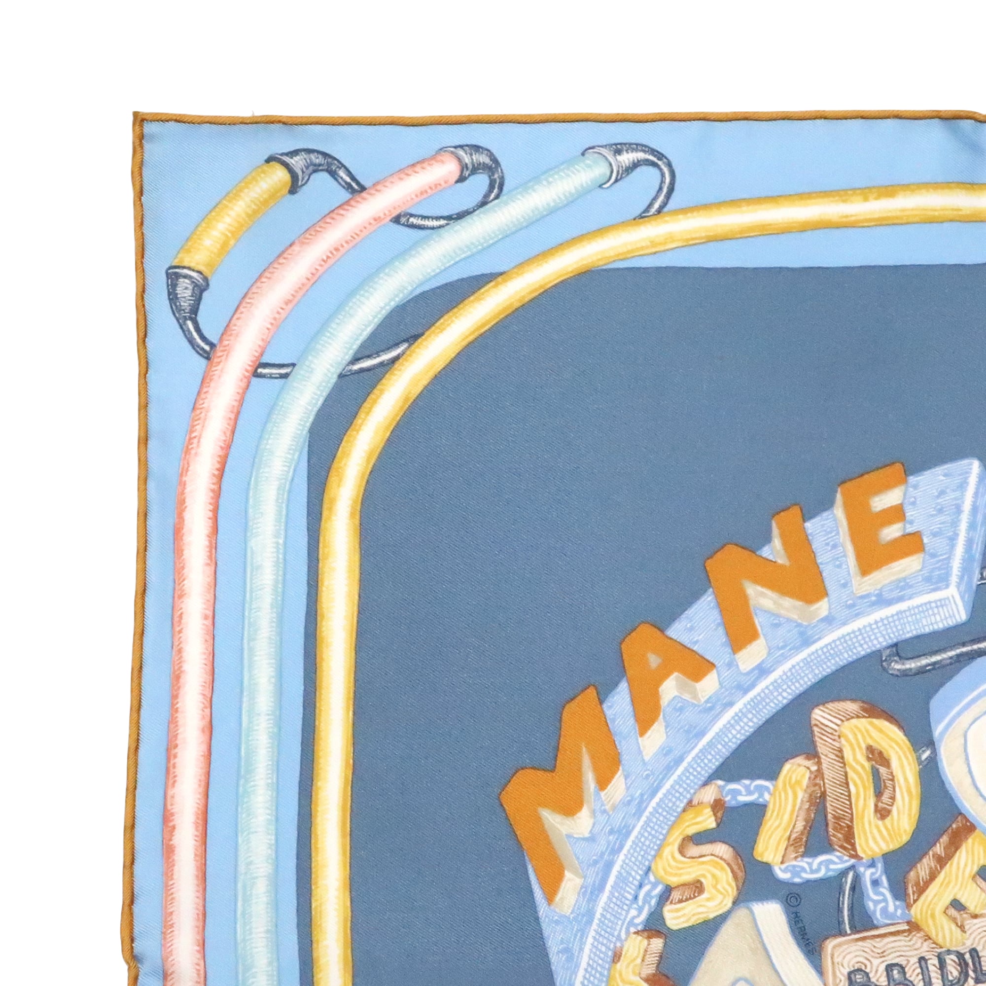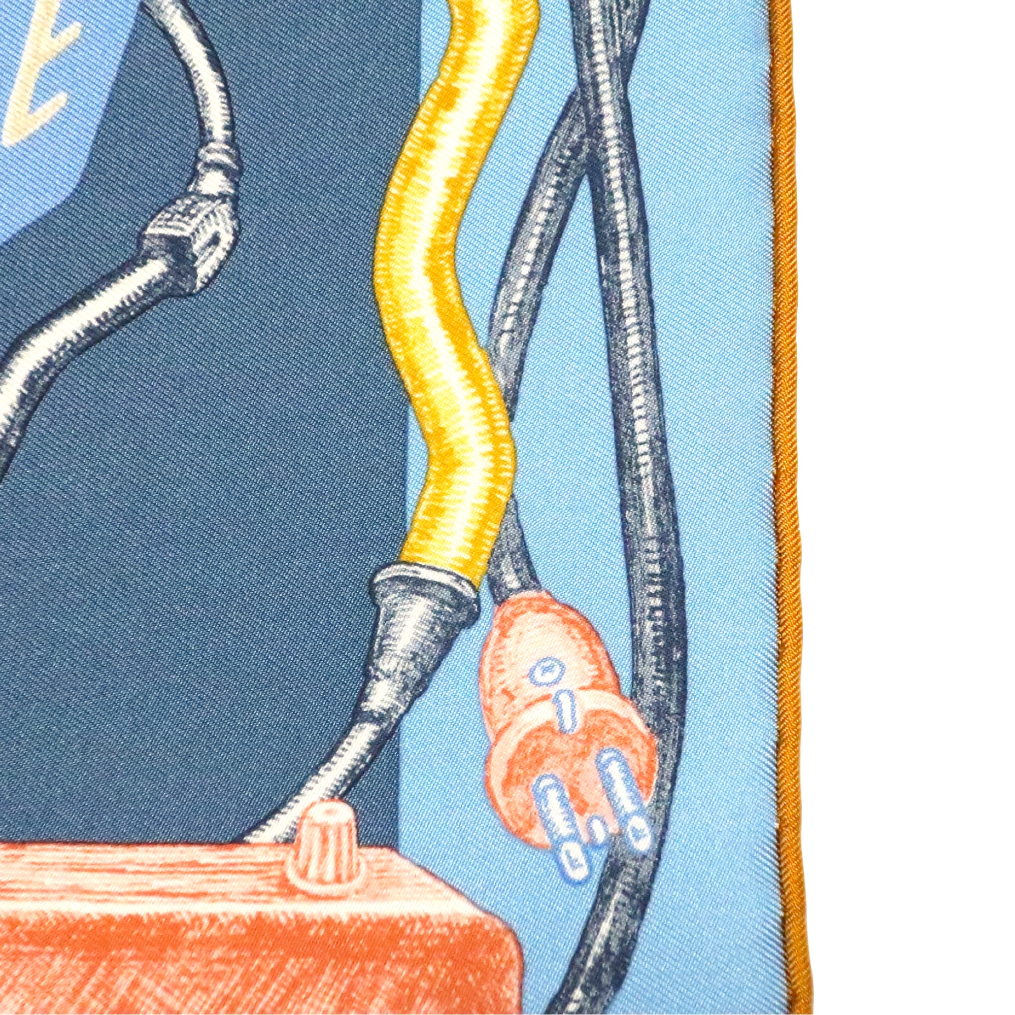 エルメス HERMES/スカーフ ガヴロッシュ シュヴァロスコープ・ネオン CHEVALOSCOPE NEON 馬 看板 ブルー スカイブルー ネオンサイン 電飾 シルク プチカレ【中古】【S277】