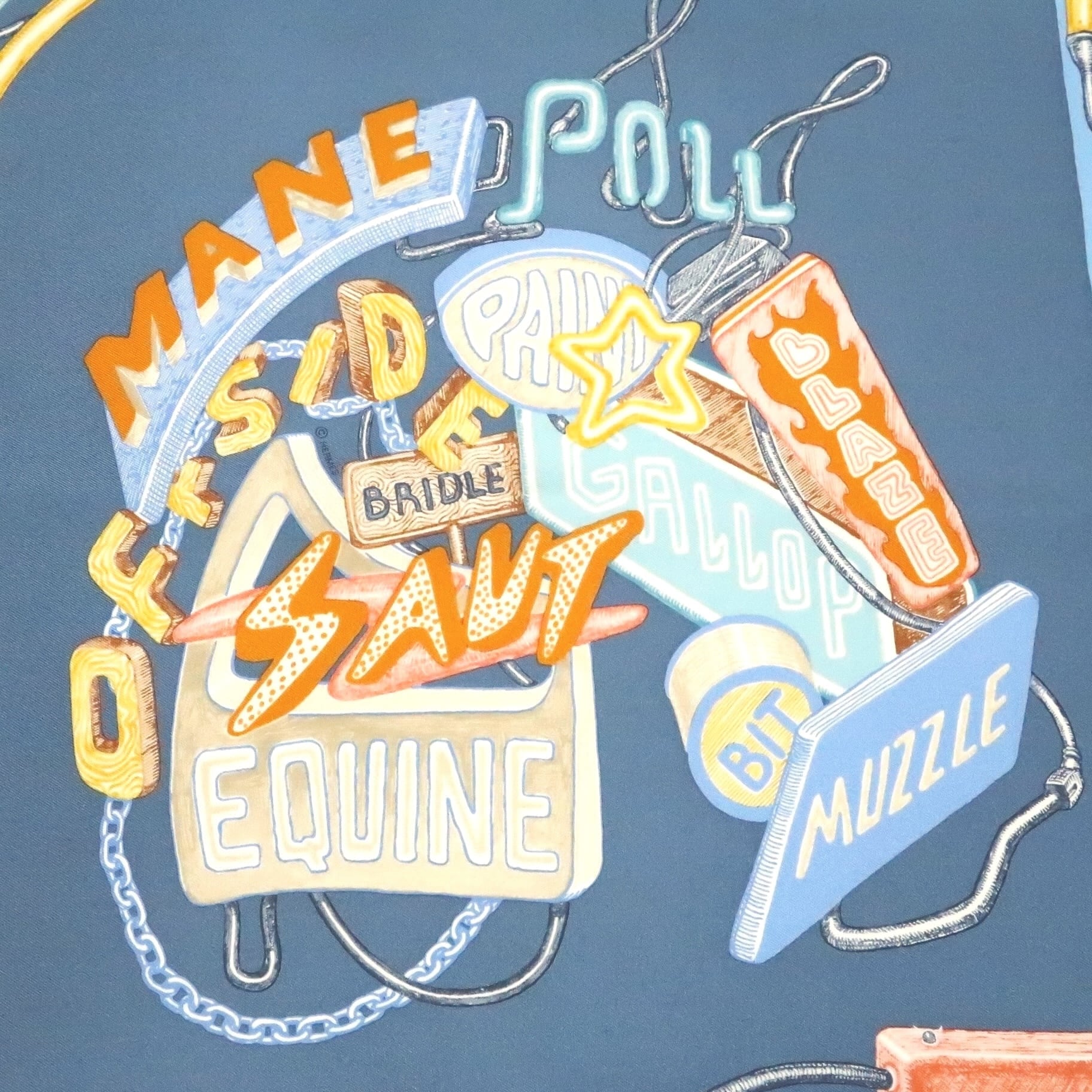 エルメスのアイコンである馬をネオンで表現したスカーフ。