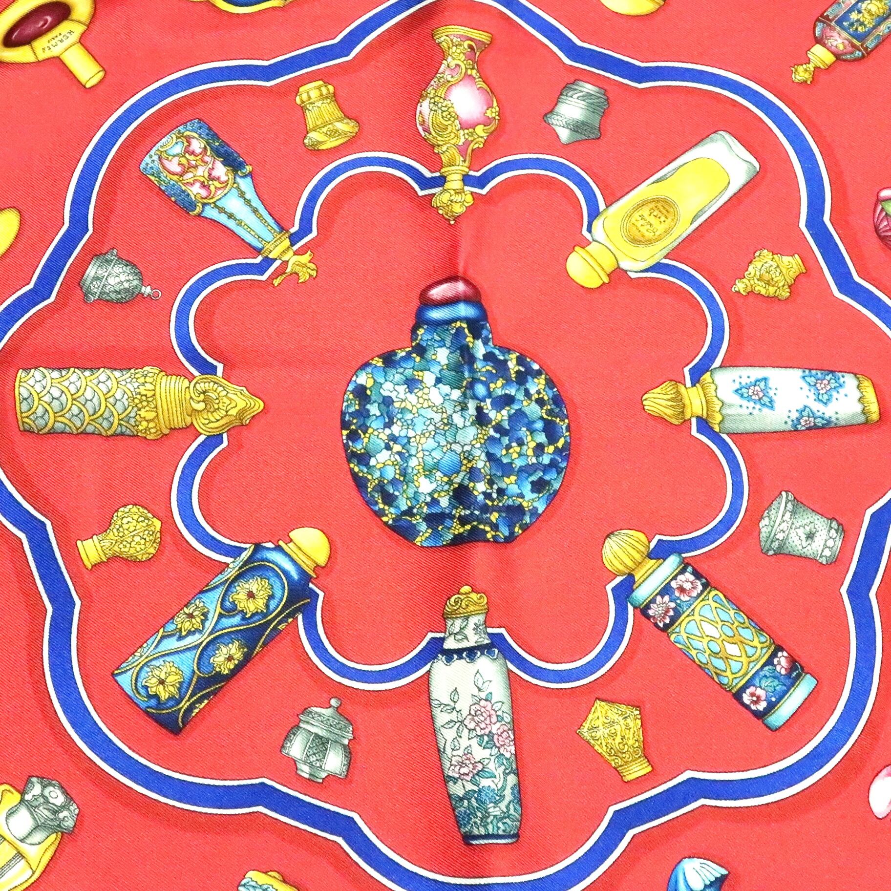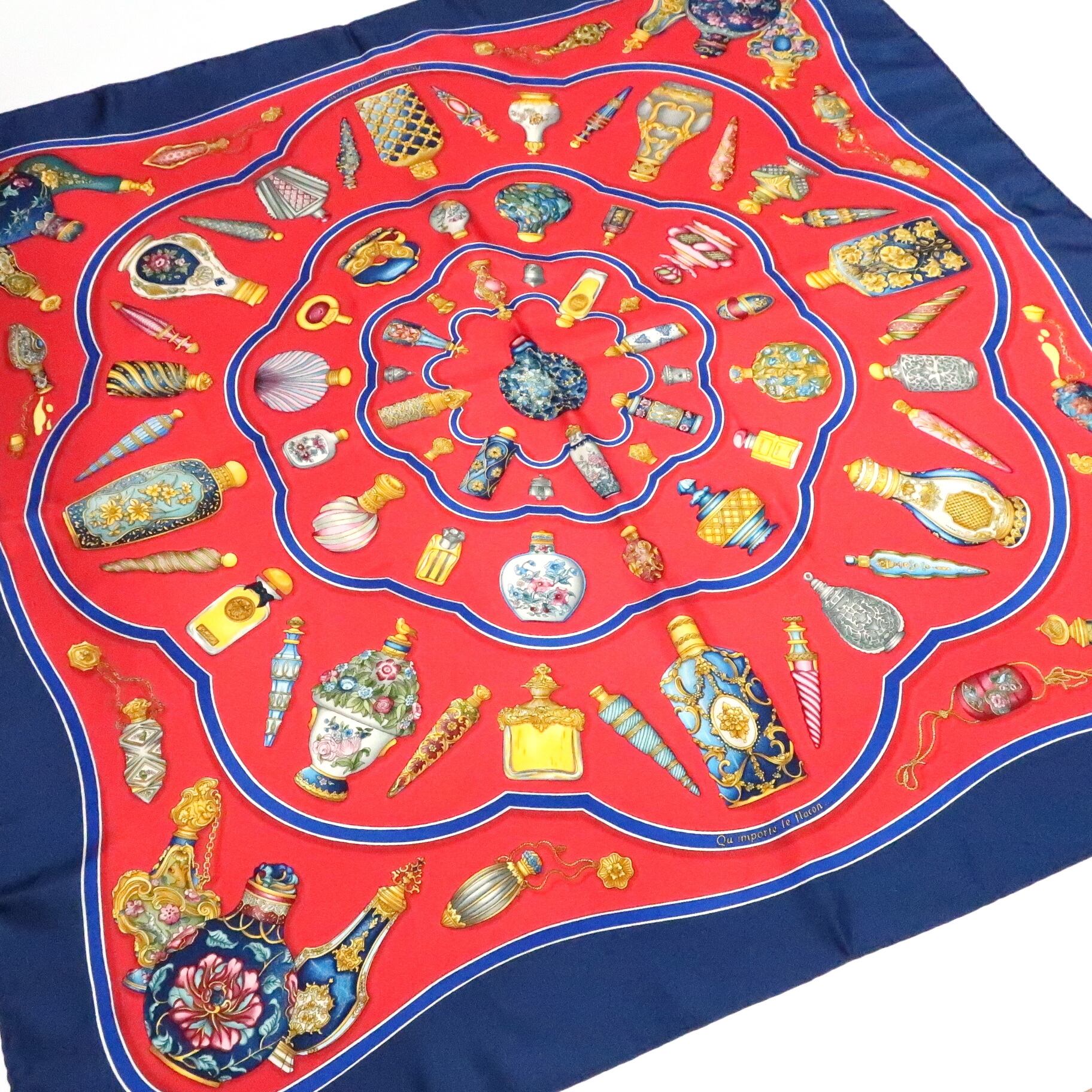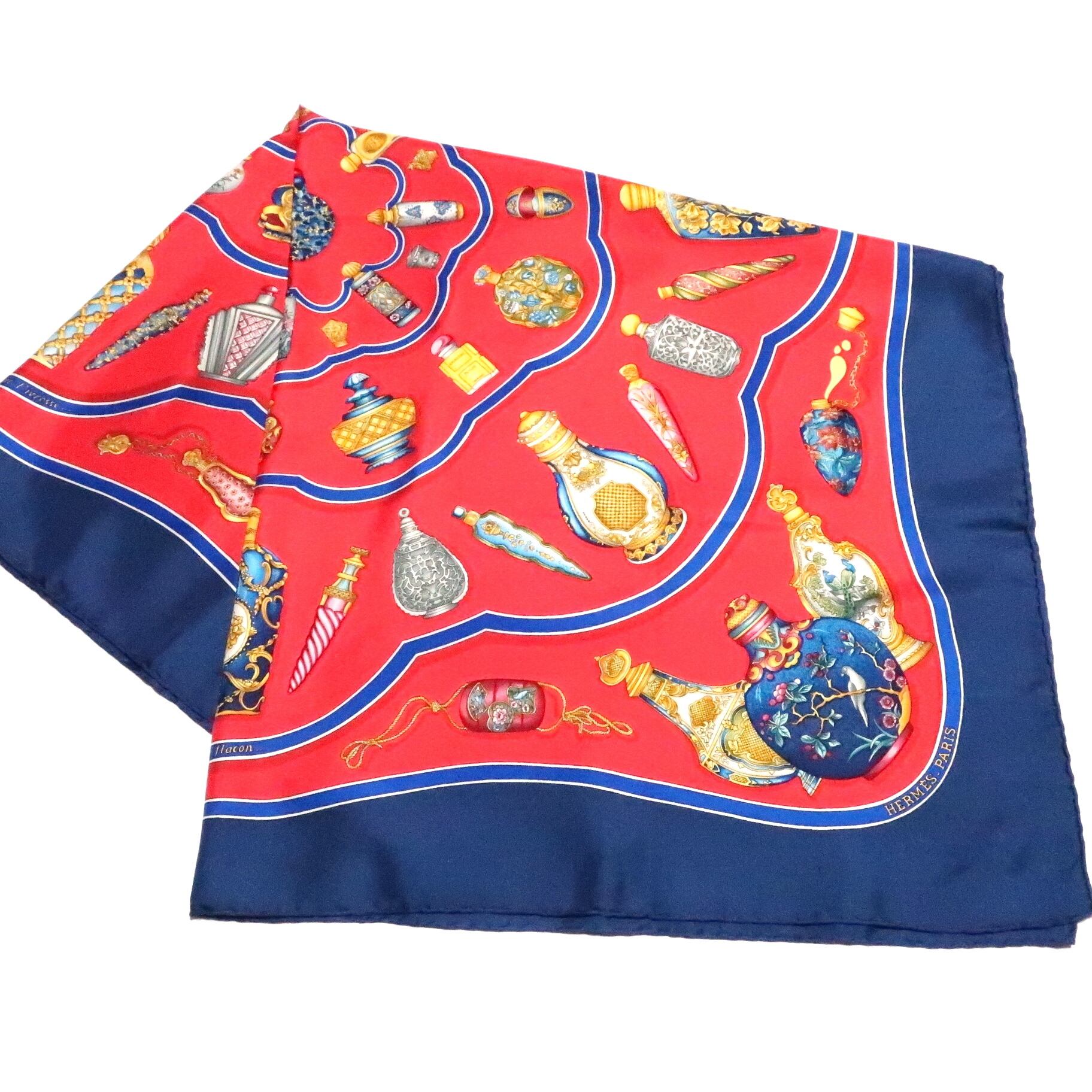 エルメス HERMES/スカーフ カレ90 香水瓶 レッド ブルー 大判 シルク【中古】【S001】
