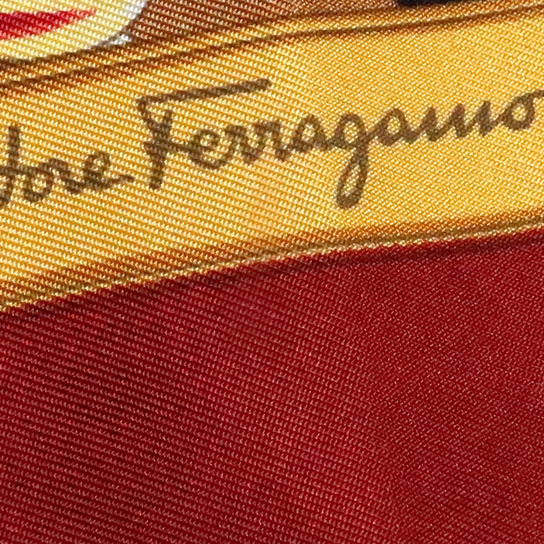 フェラガモ Salvatore Ferragamo/スカーフ 赤茶色 ヒョウ 動物 葉 大判 シルク【中古】【S014】