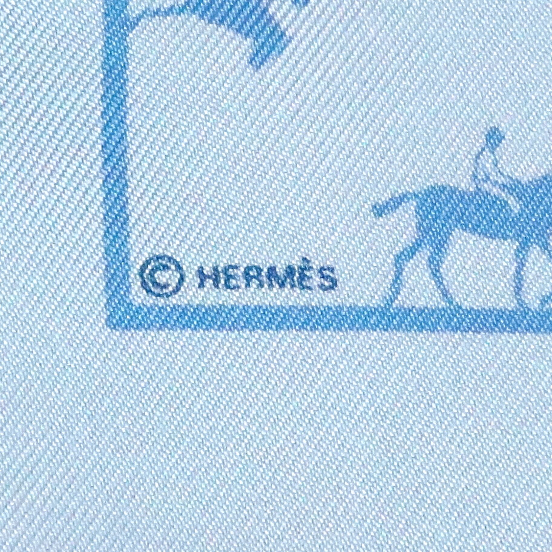エルメス HERMES/スカーフ プチカレ Saut Galop Canter Rack スカイブルー 馬術 乗馬 シルク【中古】【S022】