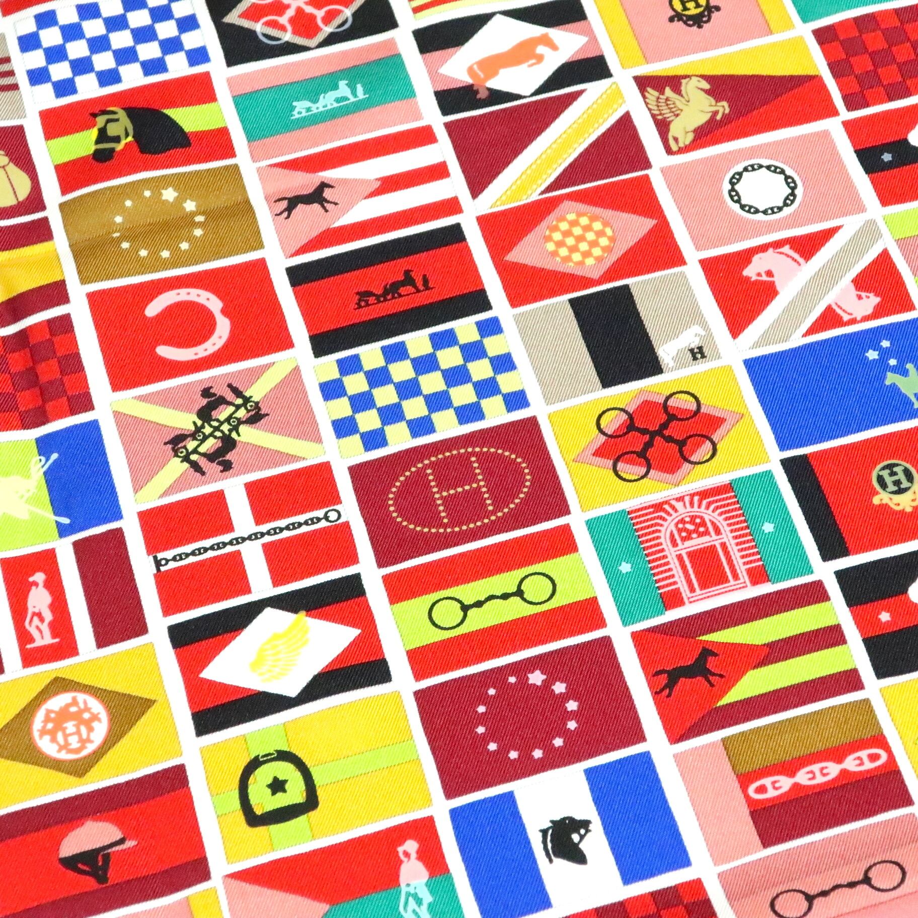 エルメス HERMES/スカーフ カレ90 ヴォヤージュ HERMES EN VOYAGE 国旗 ロゴ カラフル 大判 シルク【中古】【S040】
