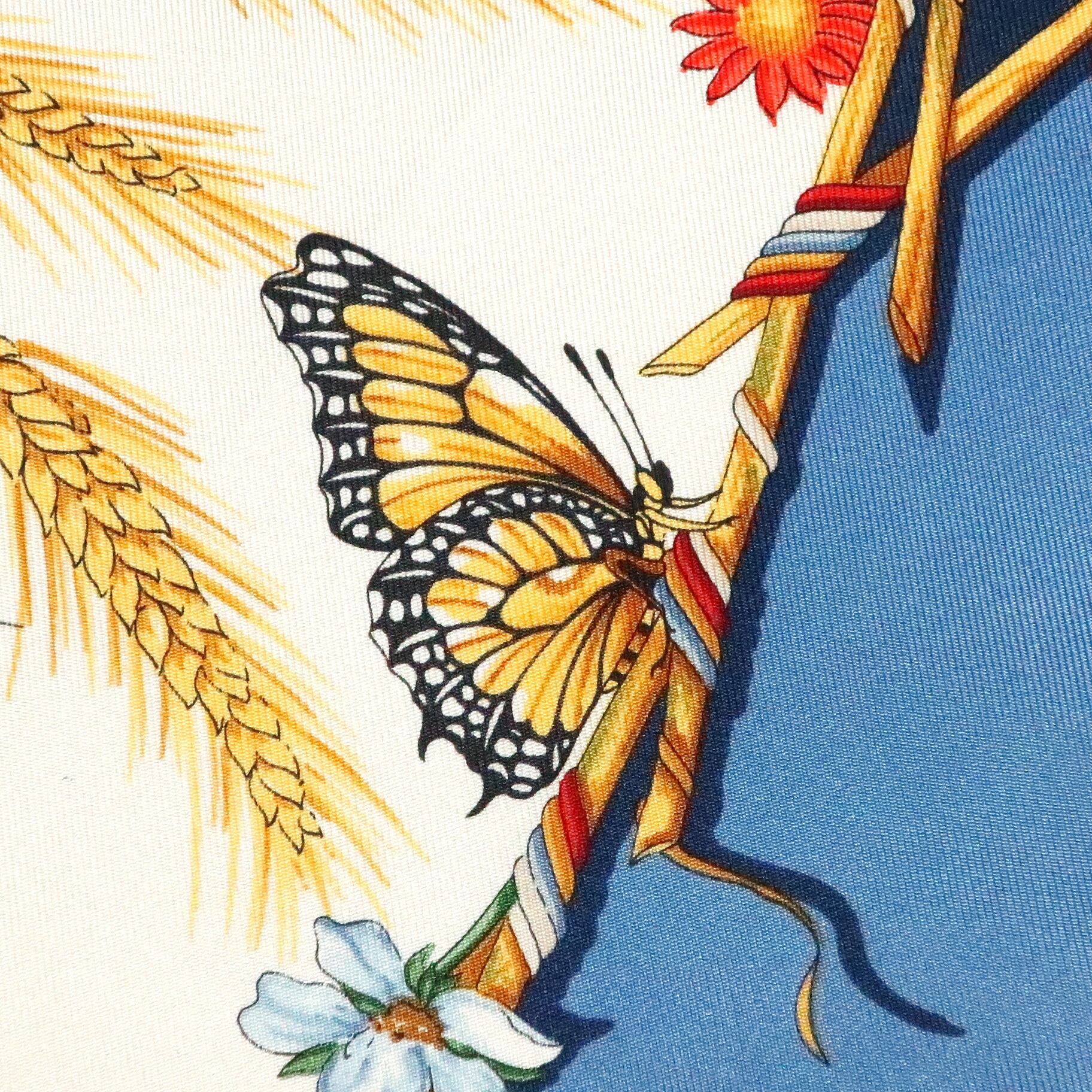 ハンティング・ワールド HUNTING WORLD/スカーフ 花柄 フラワー 蝶 ブルー カラフル 大判 シルク【中古】【S046】