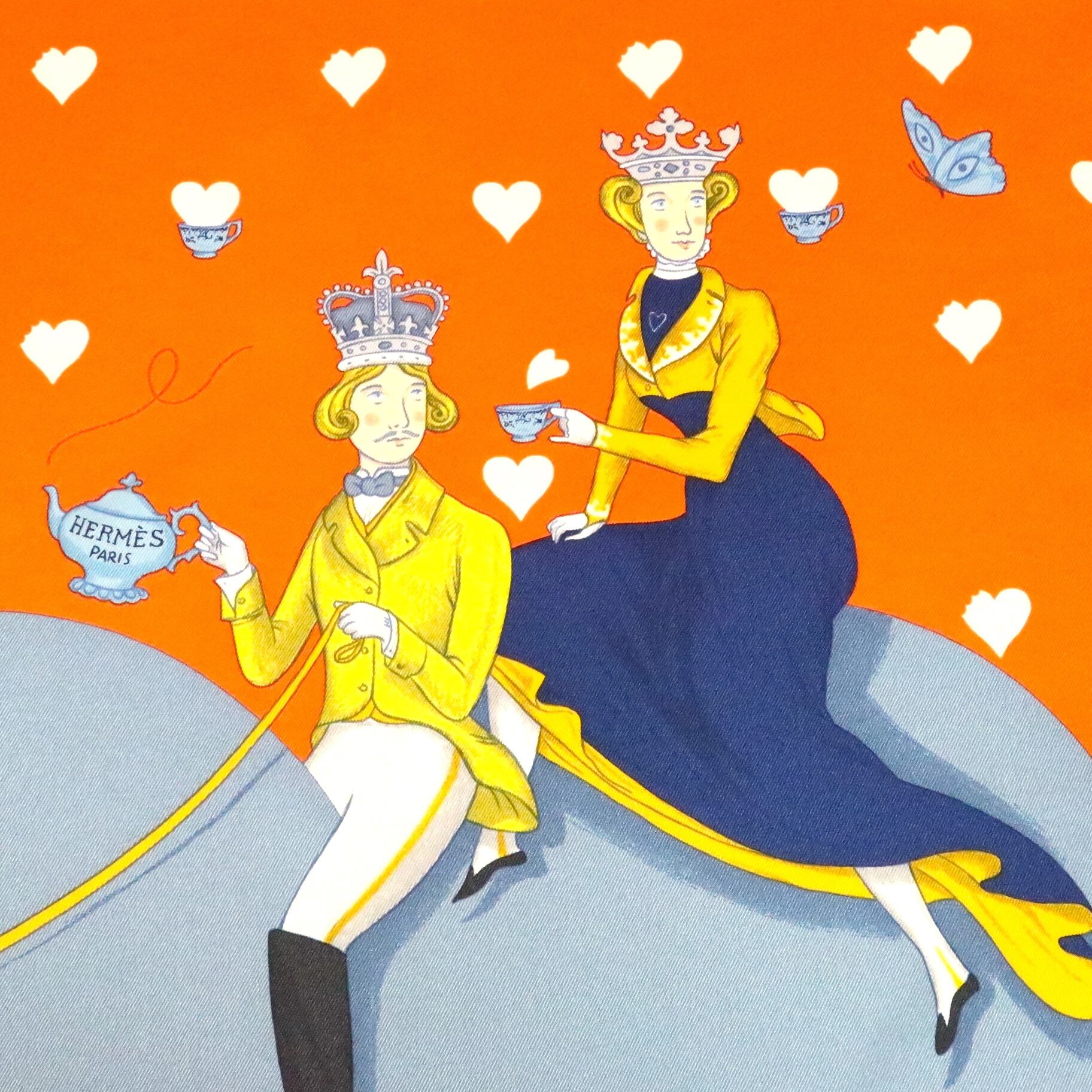 エルメス HERMES/スカーフ カレ70 ティータイム Tea Time オレンジ ハート メルヘン シルク【中古】【S078】