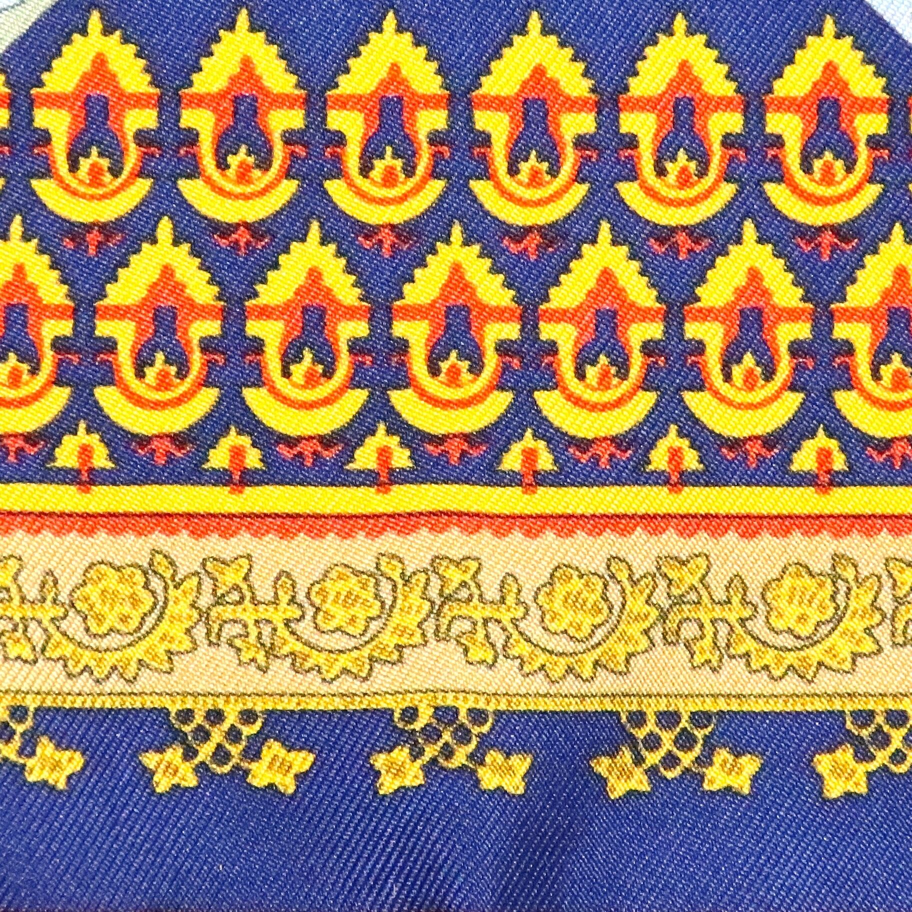 エルメス HERMES/スカーフ プチカレ 金の若枝 Brins d’or ブルー リボン 絨毯 フェアアイル柄 シルク【中古】【S090】